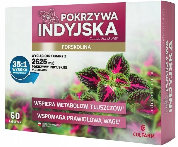 Індійська кропива (Колеус Форсклі)-це рослина з країн Азії однорангового схід і століттями, що використовуються в аюрведичній медицині протягом століть. Індійський екстракт кореня кропиви (Coleus forskohlii Radix) стандартизований до вмісту 10% форсколіну, активної речовини з групи DiterPens.