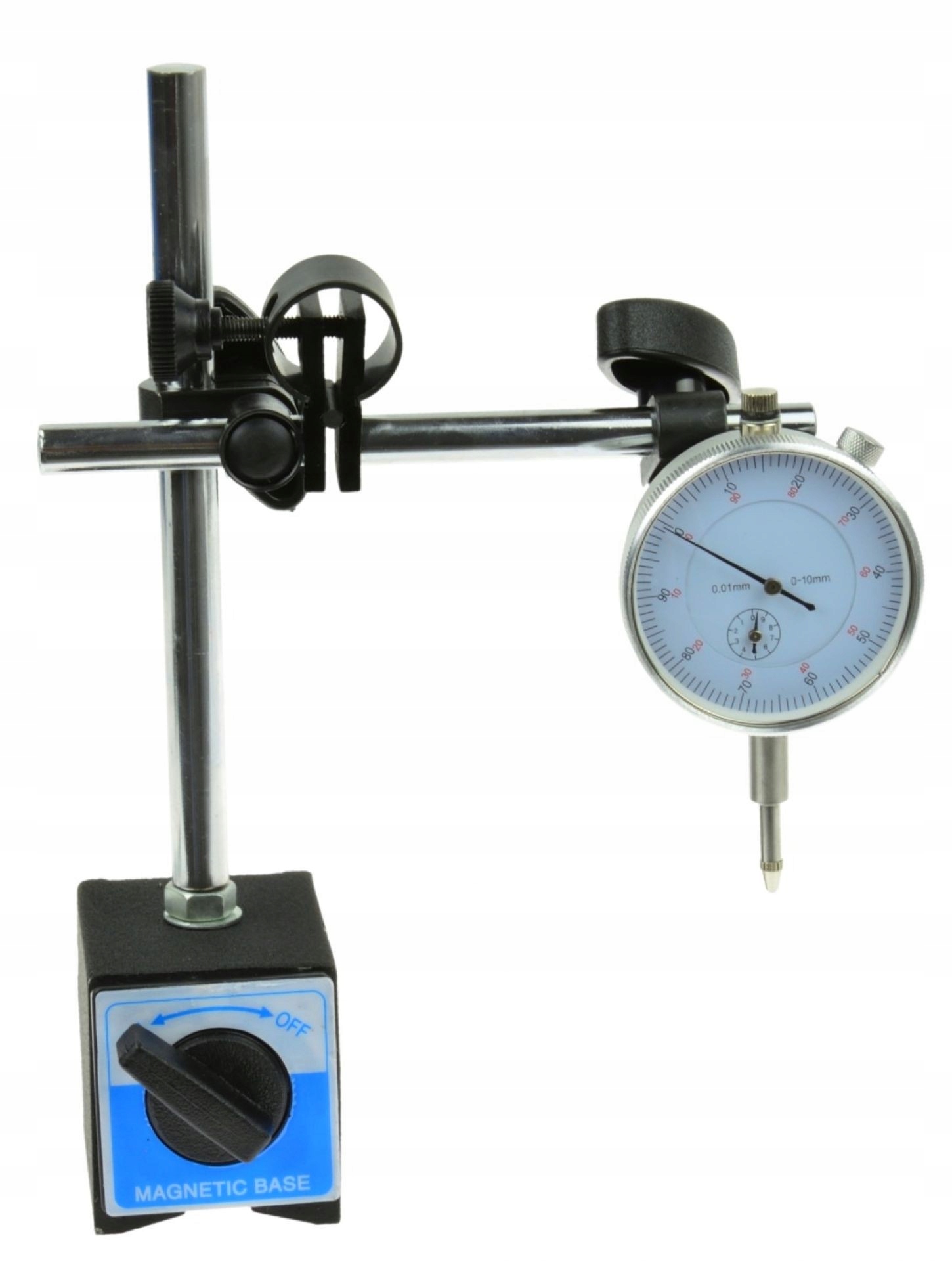 Точний циферблатний індикатор 0-10 мм з точністю 0,01 мм, в комплекті з магнітною основою. Набір призначений для дуже точної перевірки геометричних форм різних елементів і правильності їх взаємного розташування в наборі інших компонентів. Магнітний штатив має перемикач ON/OFF для активації магніту на основі.