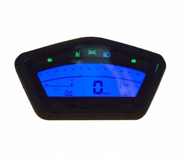 Універсальний спідометр/лічильник з необхідними елементами керування. Чудовий продукт для будівництва або модифікації транспортних засобів. Ретельно виготовлений, оснащений привабливим синім підсвічуванням.