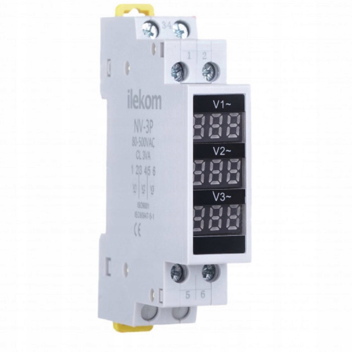Індикатор напруги (вольтметр), призначений для вимірювання напруги в мережі. Значення вимірювання відображається за допомогою цифрового індикатора - окремого дисплея для фази, на якому відображається поточне значення напруги. Світлодіодний дисплей відображає виміряні значення та дозволяє користувачеві швидко графічно зчитувати поточні значення в режимі реального часу. Лічильник монтується на стандартну рейку TH35. Цей прилад добре працює у всіх галузях промисловості, а також у домашніх розподільних щитах. Він корисний скрізь, де потрібно швидко виміряти значення поточної напруги мережі.