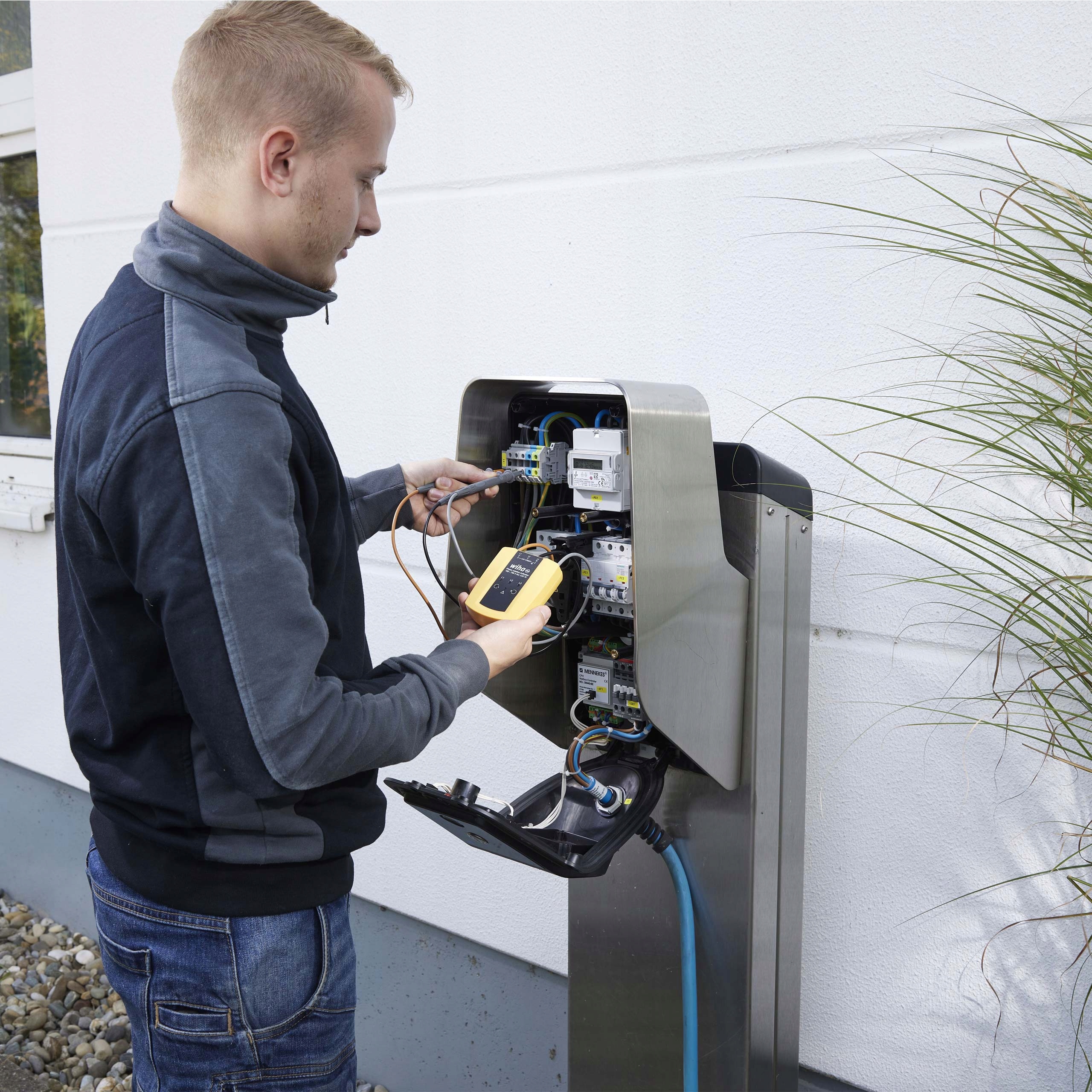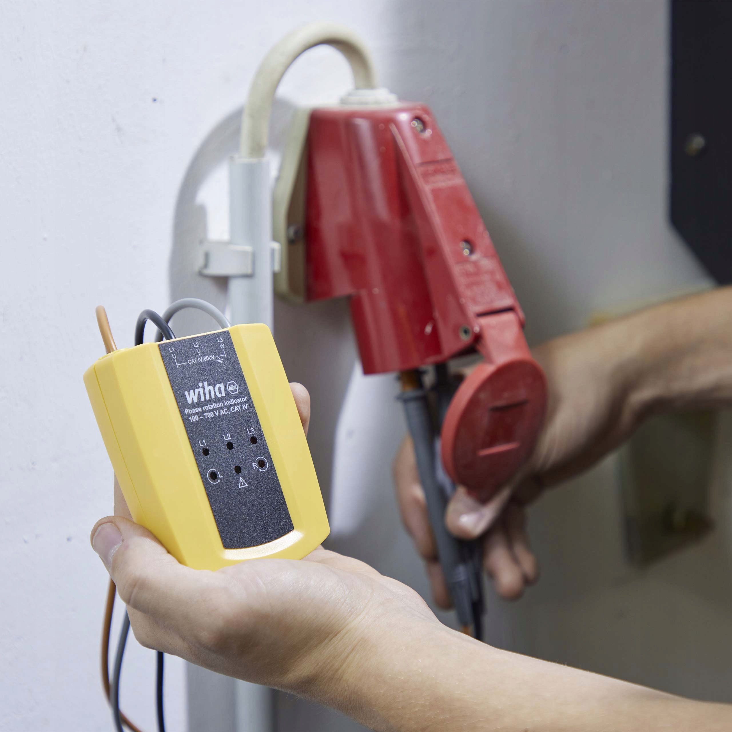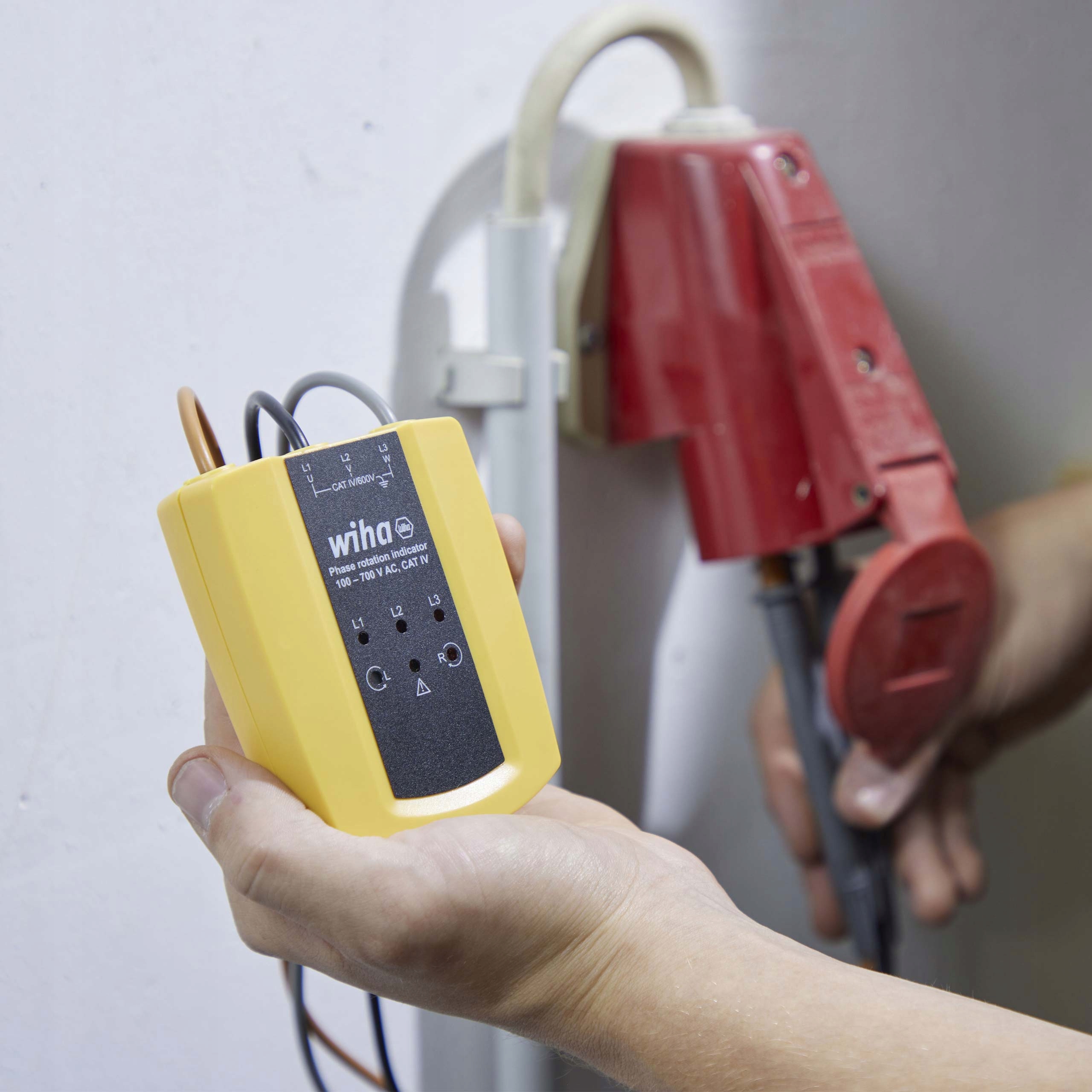 - У поєднанні з вимірювальними наконечниками індикатор напрямку обертання поля Wiha забезпечує велику гнучкість під час тестування фаз. Для роботи індикатора напрямку обертання поля потрібна лише низька напруга, тому його не потрібно живити від батарей.
