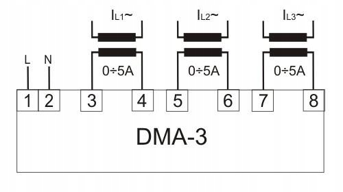 Індикатор струму ДМА-3Т призначений для безперервного зчитування значення навантаження електричних ланцюгів трифазної мережі.