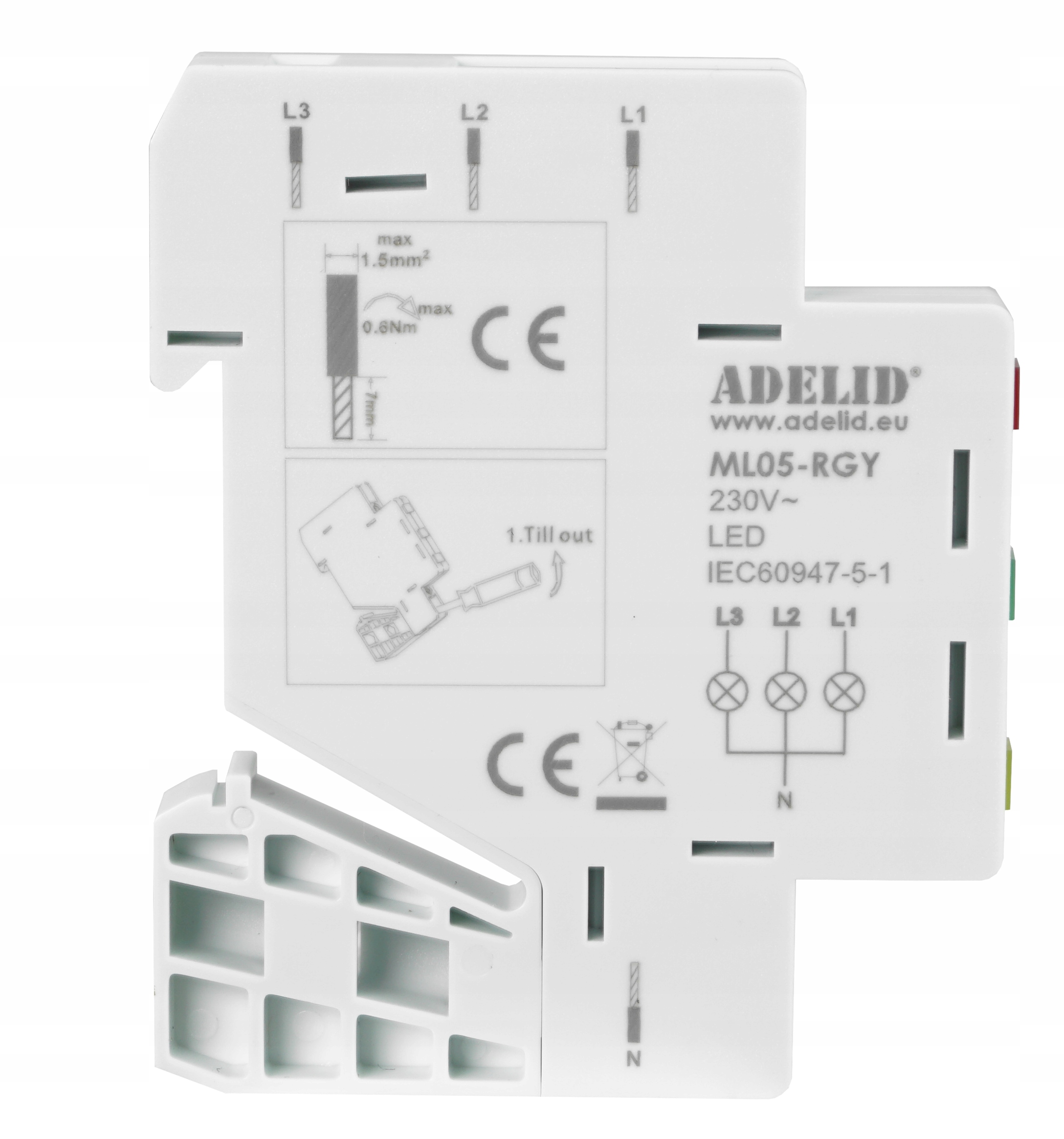 - Лампа використовується для сигналізації про наявність напруги за допомогою світлодіода. Призначений для монтажу на стандартну рейку TH35. Має ступінь захисту IP20.