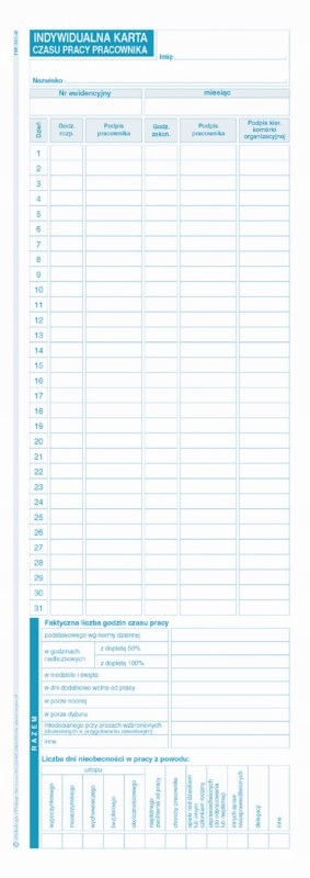 ІНДИВІДУАЛЬНА ДРУКОВА КАРТКА РОБОЧОГО ЧАСУ
