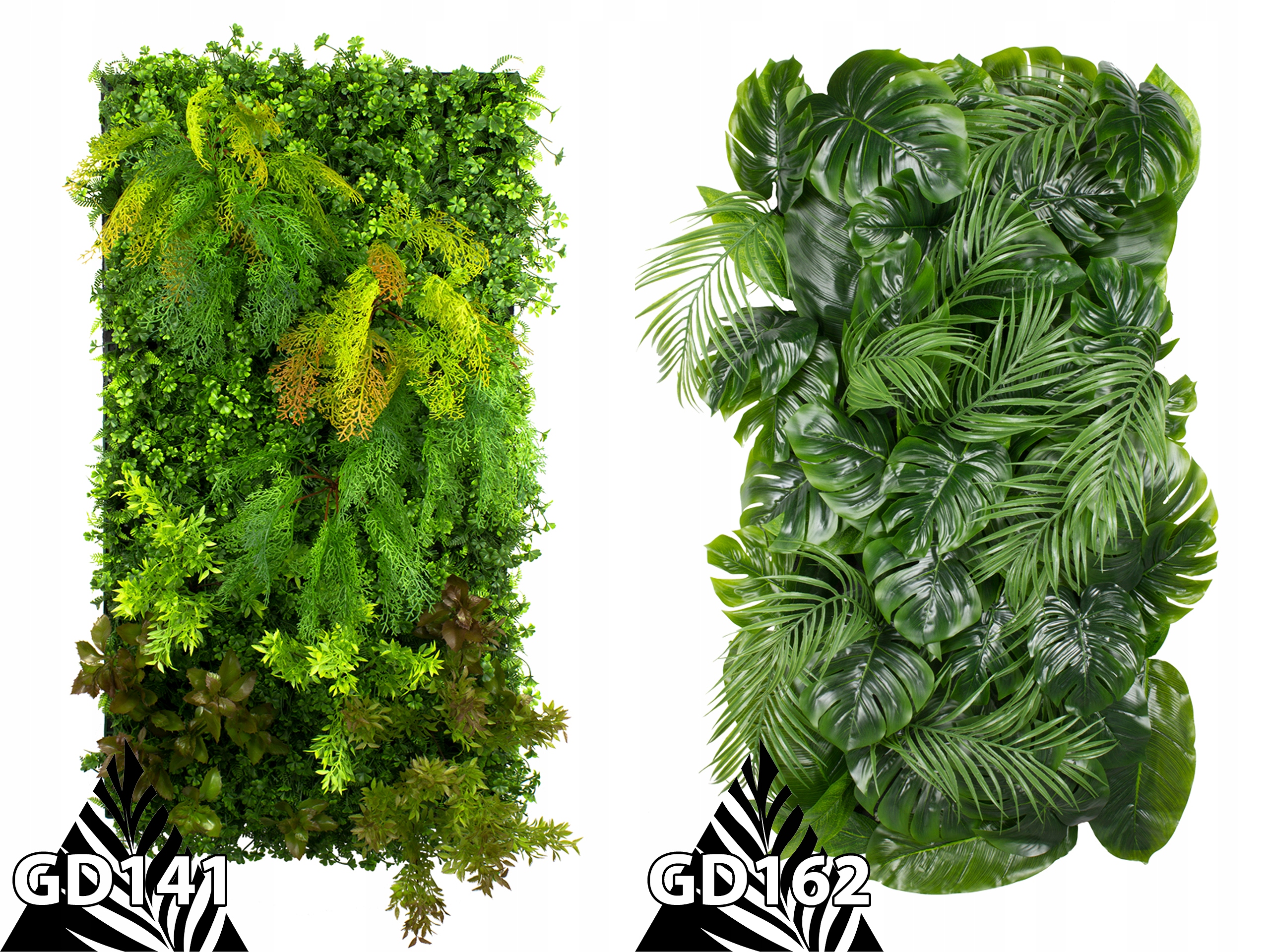 Наша пропозиція також включає готові вироби у вигляді килимків розміром 40 x 60 або 50 x 50 см, які можна комбінувати для створення зелених стін.