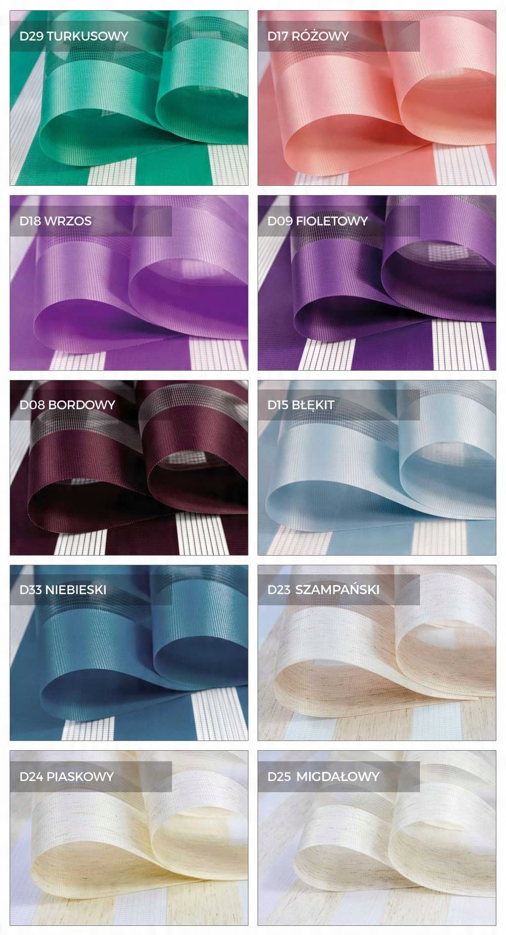 Нижче аукціону ви знайдете найбільший вибір кольорів тканини для жалюзі «День» і «Ніч».