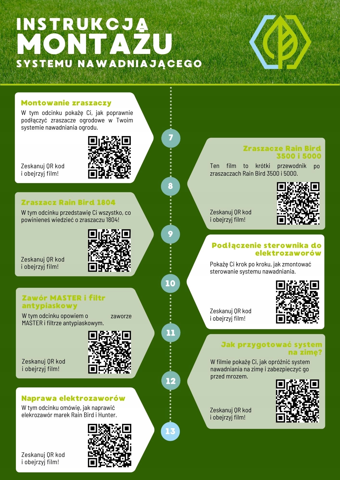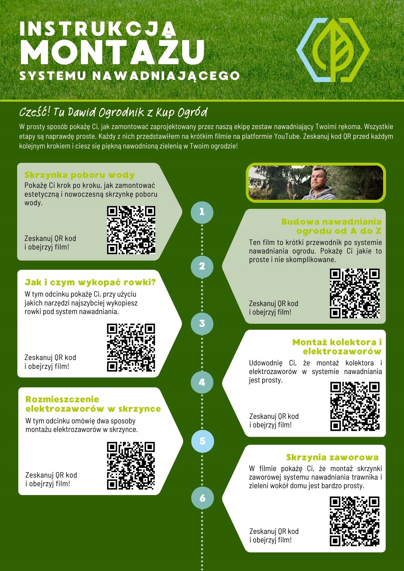 Для полегшення встановлення системи зрошення ми надаємо вам детальні інструкції, що містять QR -коди. Завдяки їм ви можете швидко отримати доступ до відеороликів та додаткових порад, які призведуть до кроку через весь процес встановлення. Це повна підтримка з нашого боку, що забезпечує зручність і впевненість у тому, що збірка буде працювати безперебійно і без проблем.