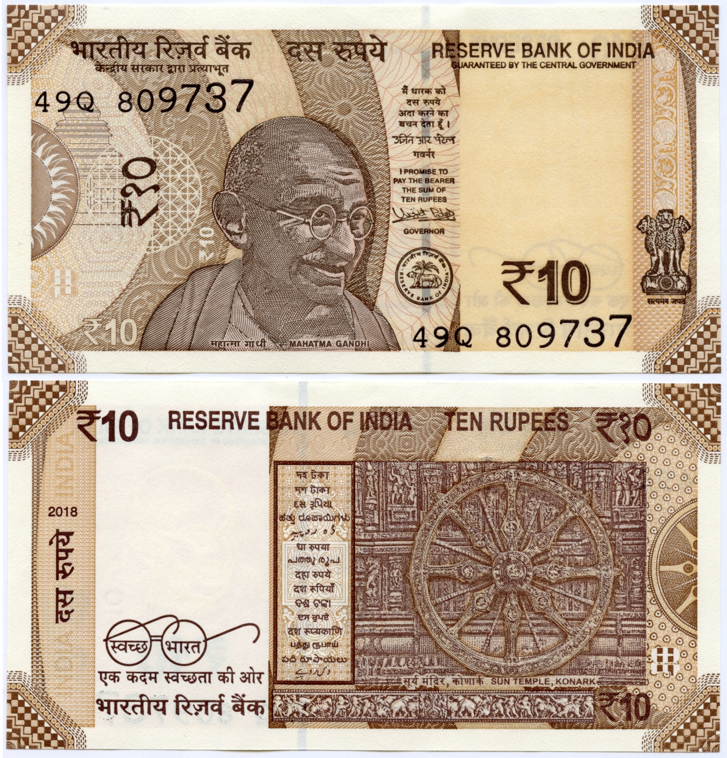ІНДІЯ 10 РУПІЙ 2018 P-W 109 UNC,