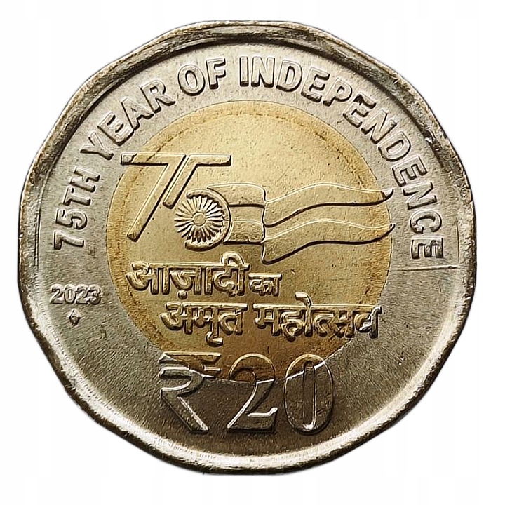 ІНДІЯ 20 РУПІЙ 2023 75 Л НЕЗАЛЕЖНІСТЬ БІМЕТАЛ UNC