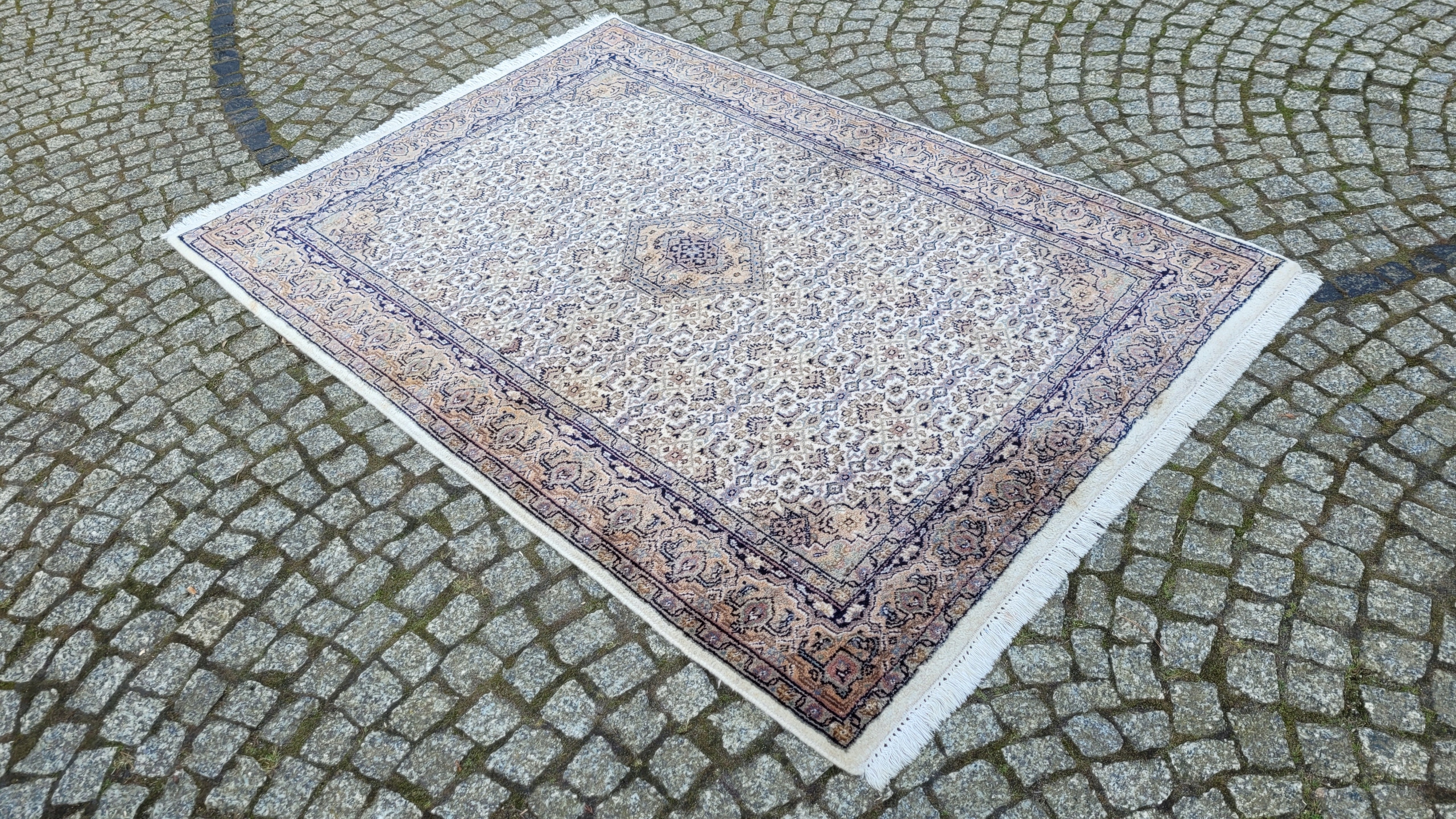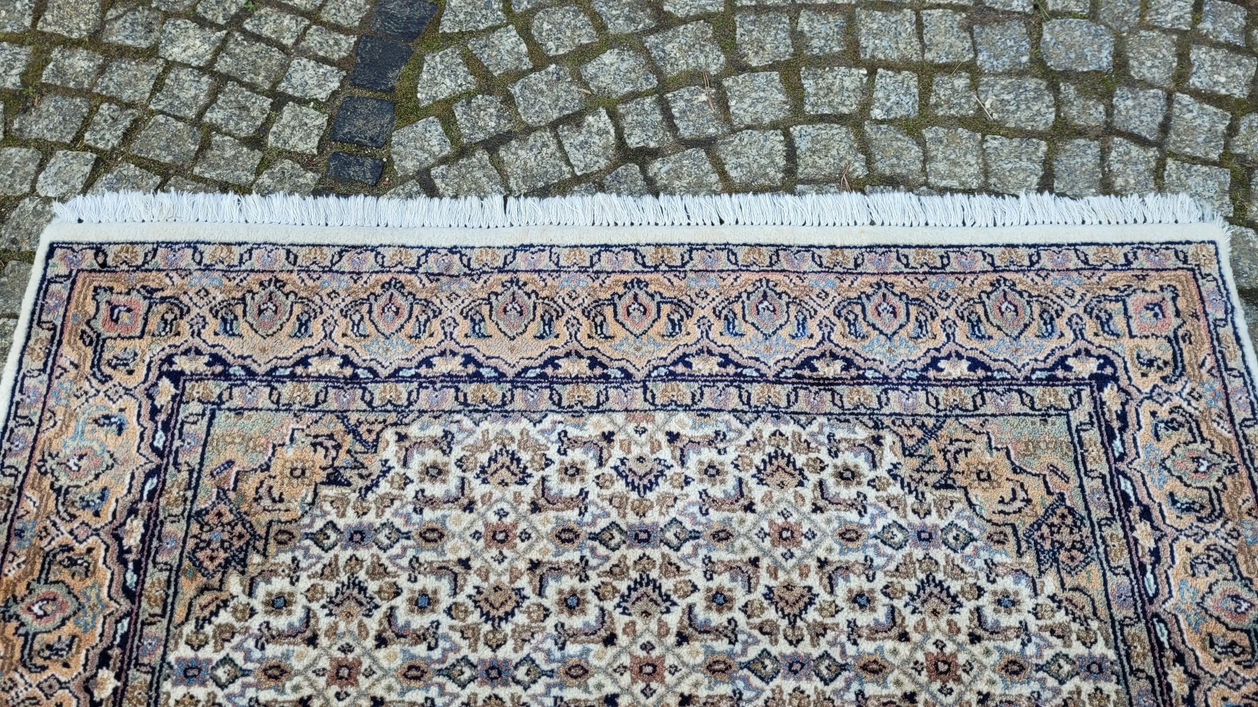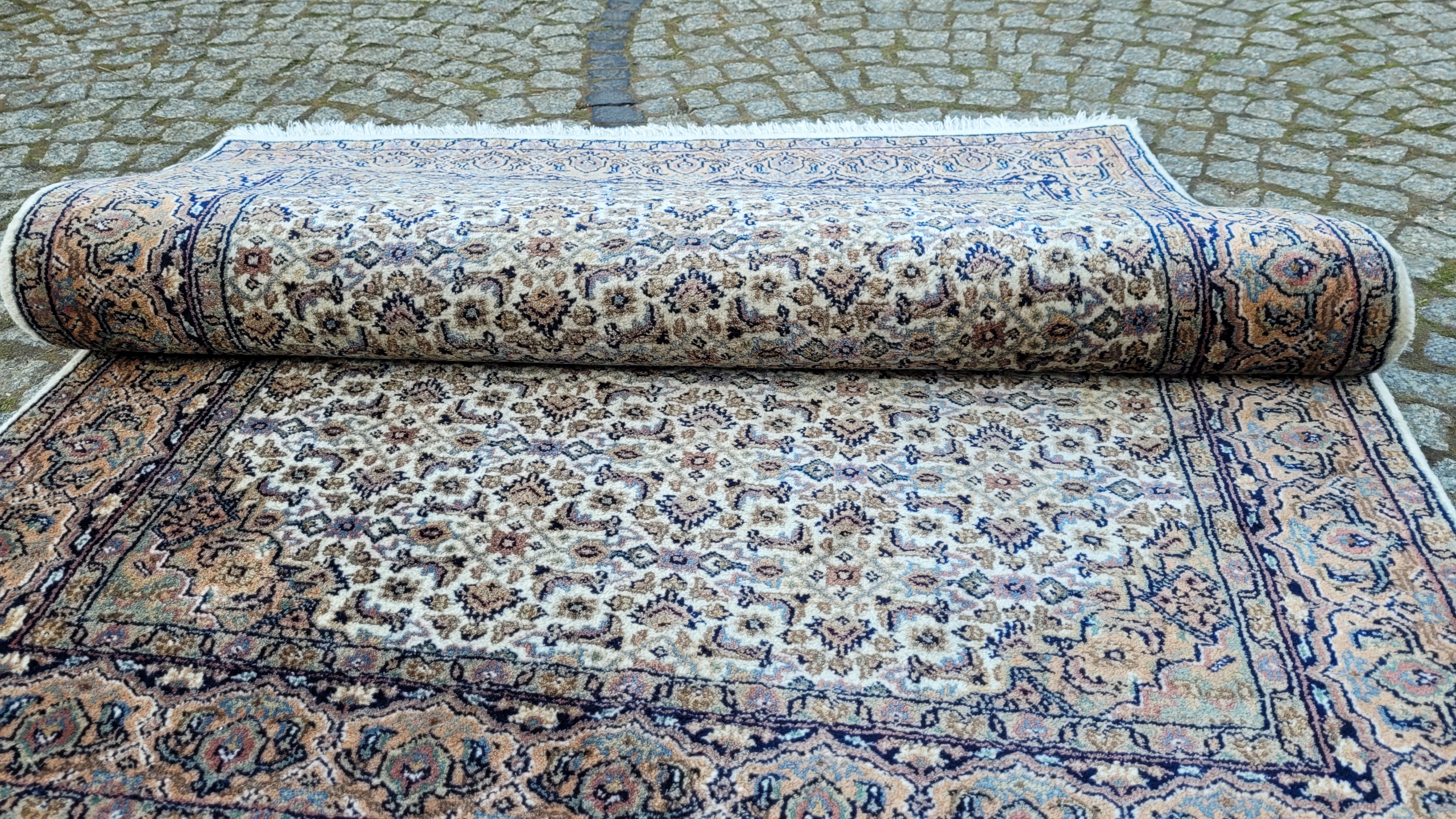 Індійський килим біджар. Виткана вручну з вовни найвищої якості. Характеризується компактним, блискучим, приємним на дотик флісом і красивими кольорами та візерунками. Він у дуже хорошому стані.