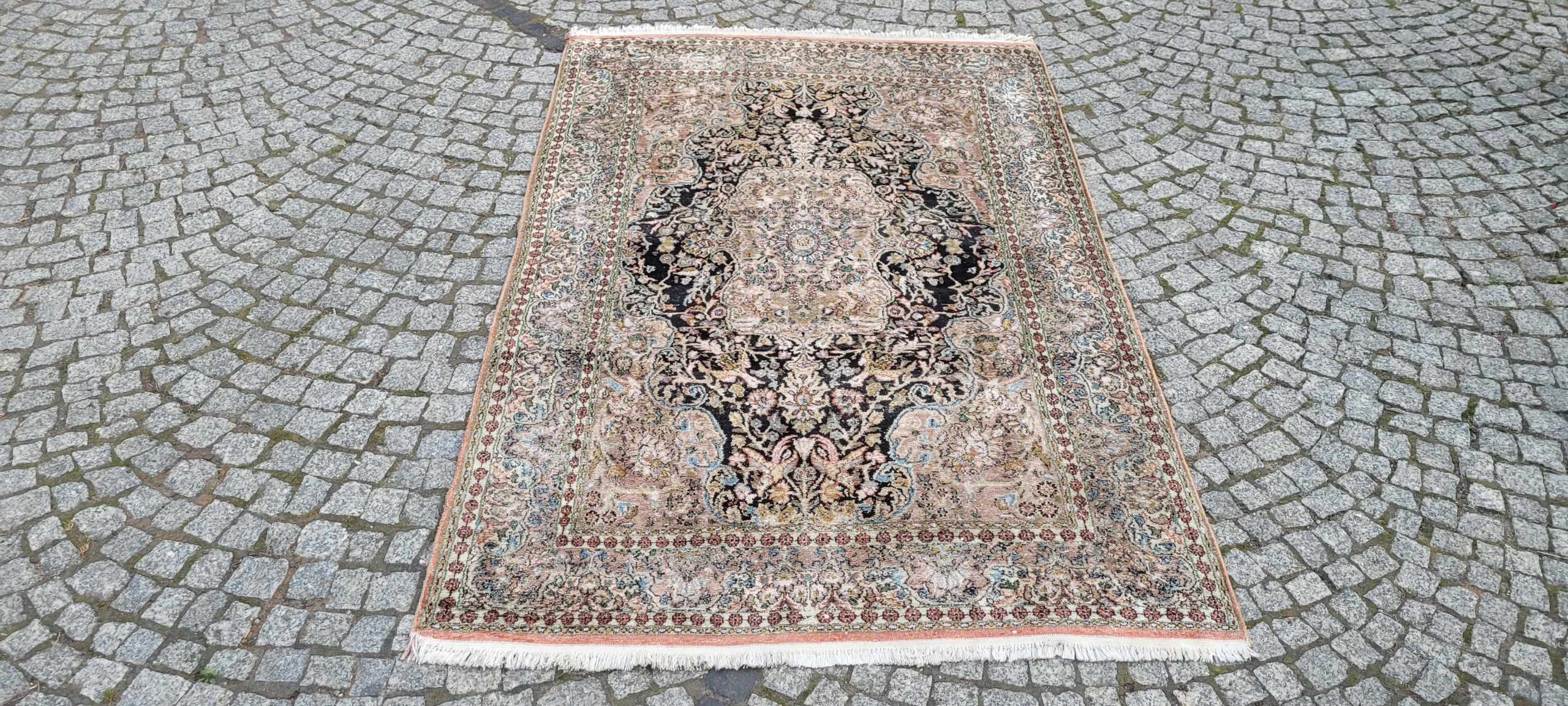 INDO GHOM СЯЮЧИЙ ПЕРСЬКИЙ КИЛИМ ТКАНИЙ ШОВК 127/200
