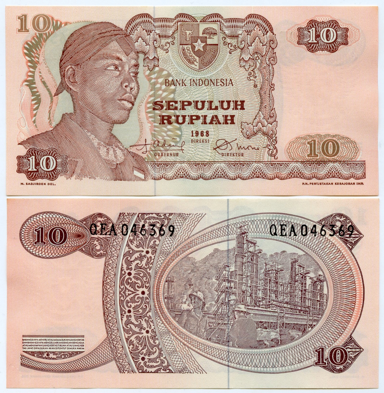 Індонезія 10 рупій 1968 р. P-105 UNC