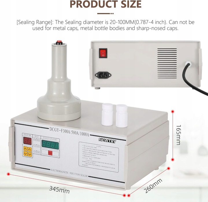 - [Діапазон герметизації]: Діаметр ущільнення становить 20-100 мм (0,787-4 дюйма). Він не підходить для металевих накладок, металевих тіл та горіхів з гострими носами.