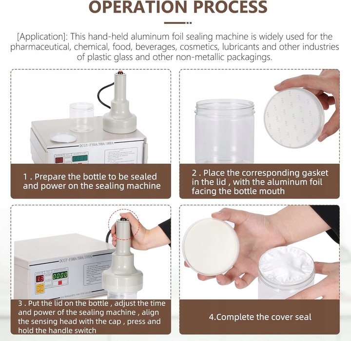 - [Застосування]: Ця ручна машина для герметизації алюмінієвої фольги широко використовується для фармацевтичної, хімічної, їжі, напоїв, косметики, мастила та інших пластикових скляних промислових та інших неметалічних упаковки. Ul