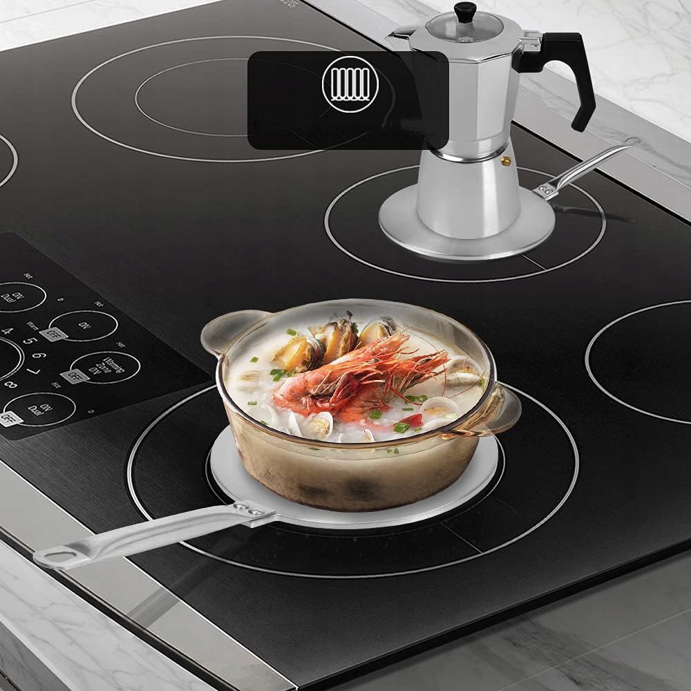 ✔️ 【Protect your pan】 Made of stainless steel and aluminum, durable and resistant to corrosion, this adapter plate is suitable for all types of pots and a path stainless, aluminum, glass, ceramics, etc. The induction hob protects the судна від знебарвлення. Плитка захищає плиту від бруду або пошкодження, спричиненої розлитою їжею.