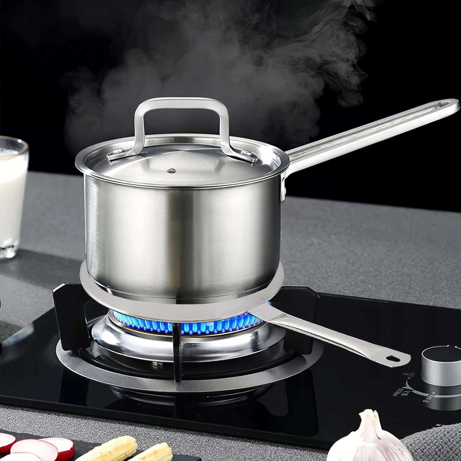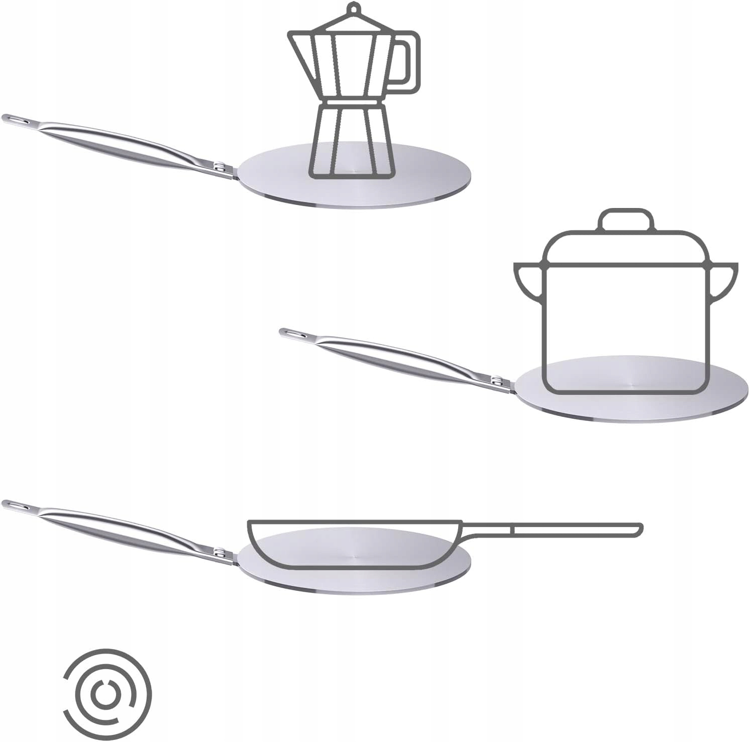 ✔ 【особливо для індукції】 спеціально розроблений для використання немагнітних кухонних начиння на індукційній варильні, тому вам не доведеться купувати нові горщики та печі. Підходить для кави та суден з базовим діаметром 16-20 см при індукції.