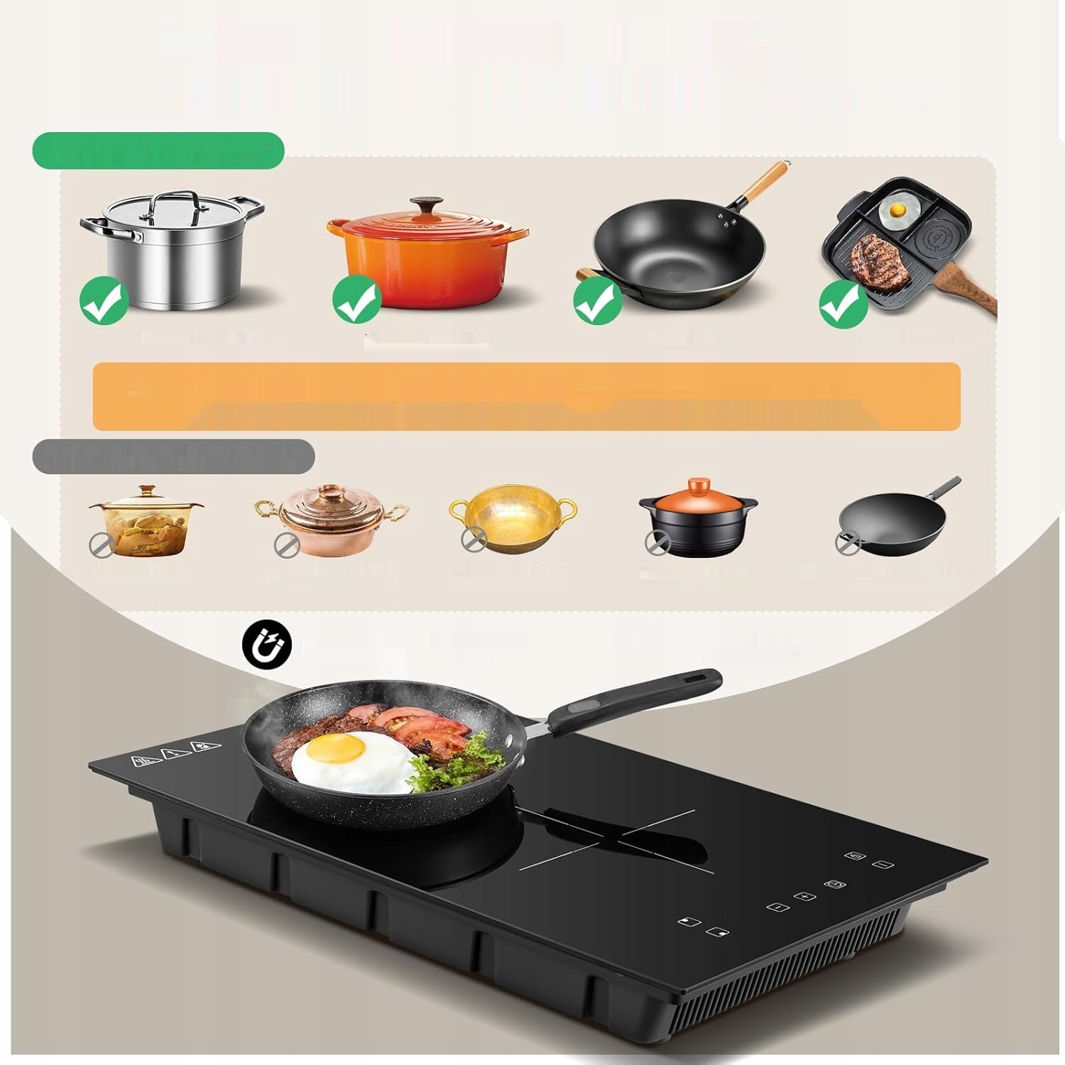 Для швидкої перевірки просто покладіть на нього магніт - якщо він притягнеться, посуд працюватиме на плиті. Примітка. Не всі сорти нержавіючої сталі підходять (наприклад, SUS304, SUS316 є немагнітними і не працюватимуть).