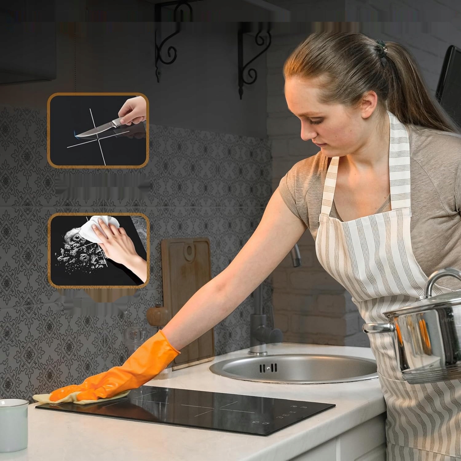 - ⭐ Поверхня із загартованого скла - елегантна чорна пластина, яка легко миється, стійка до високих температур і подряпин.