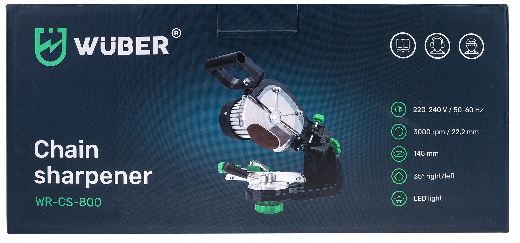Професійний верстат для заточування ланцюга Wuber WR-CS-800 легко та швидко наточить ланцюг для бензинової чи електричної пилки. Пристрій має регульовані лещата, завдяки яким можна легко встановити потрібний кут заточування, зручний фіксатор заточеного ланцюга та обмежувач. Кількаступінчасте регулювання кута заточування ланцюга зі шкалою та регулювання бокового плеча забезпечують ергономічну, зручну роботу і, перш за все, забезпечують точність при заточуванні ланцюга. Точилка оснащена надійним безщітковим асинхронним двигуном потужністю 800W. Це дозволяє досягти максимальної швидкості обертання 3000 об/хв. М'ясорубка включає всі елементи, необхідні для складання та введення в експлуатацію. Додатковий шліфувальний диск забезпечить більш тривалу роботу обладнання. Стійка опорна пластина точила і регулювання кута від 0 до 35 градусів гарантують високий комфорт використання. Світлодіодне підсвічування забезпечує кращу видимість під час роботи.