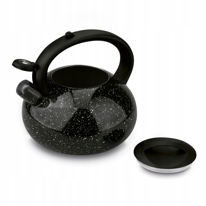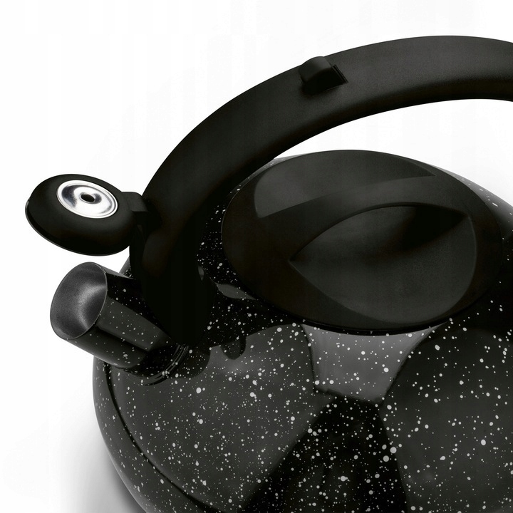 Чайник Tadar Vita 2,5 л з чорного мармуру з нержавіючої сталі чудово виглядає на плиті, тому ви отримуєте стильну кухонну техніку. Знімна кришка, відкидний свисток і повільно нагрівається бакелітова ручка полегшують приготування напоїв і забезпечують безпеку. Нержавіюча сталь забезпечує чайнику довговічність і стійкість, а також захищає здоров'я ваших близьких (не впливає на властивості води). Однією рукою достатньо, щоб наповнити чайник або наповнити чашки окропом. Ви можете легко видалити накип. Ви можете ефективно кип'ятити воду. Виріб добре підійде на домашній кухні з різною обстановкою і з більшою кількістю домочадців або гостей. Поворотний, стаціонарно встановлений механізм свистка не тільки захищає ваші руки від опіків. Таким чином ви уникнете його падіння на плиту та розплавлення. Досить гучний звук вчасно нагадає, що пора заварити чай чи каву.