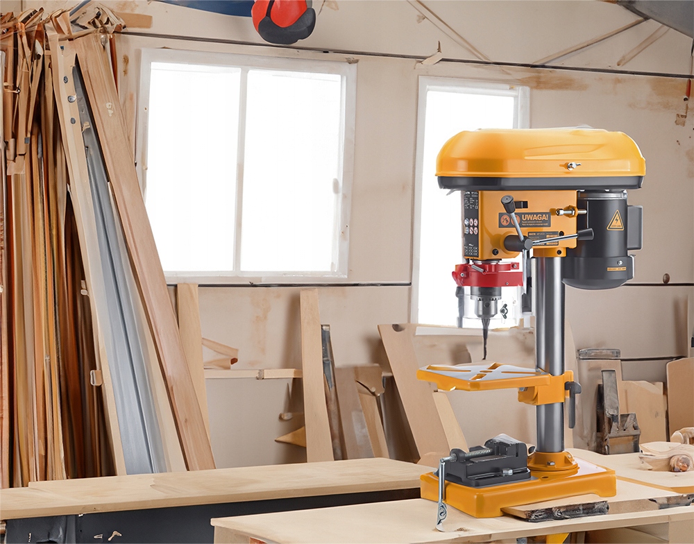 Настільна дриль оснащена 9-швидкісним регулюванням швидкості, що значно полегшує адаптацію пристрою для свердління в різних матеріалах, починаючи з металу , дерево, сталь , аж до пластикута інших видів матеріалів.