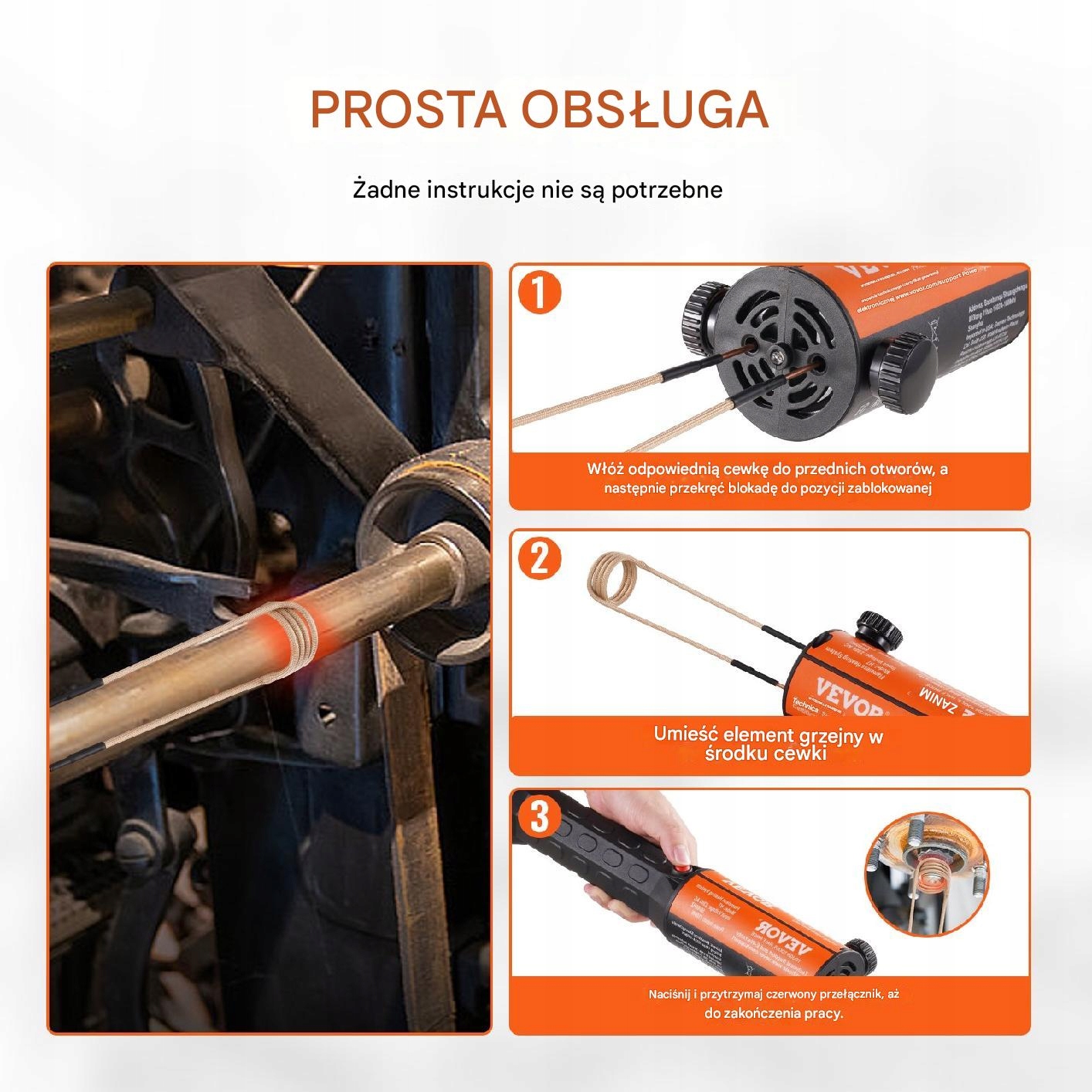 - ✅ Ергономічна ручка : Ручний індукційний нагрівач характеризується великою ручкою non -slip , що забезпечує певне і комфортне зчеплення. Завдяки відповідному дизайну робота з інструментом є більш стабільною, що впливає на комфорт та безпеку використання.