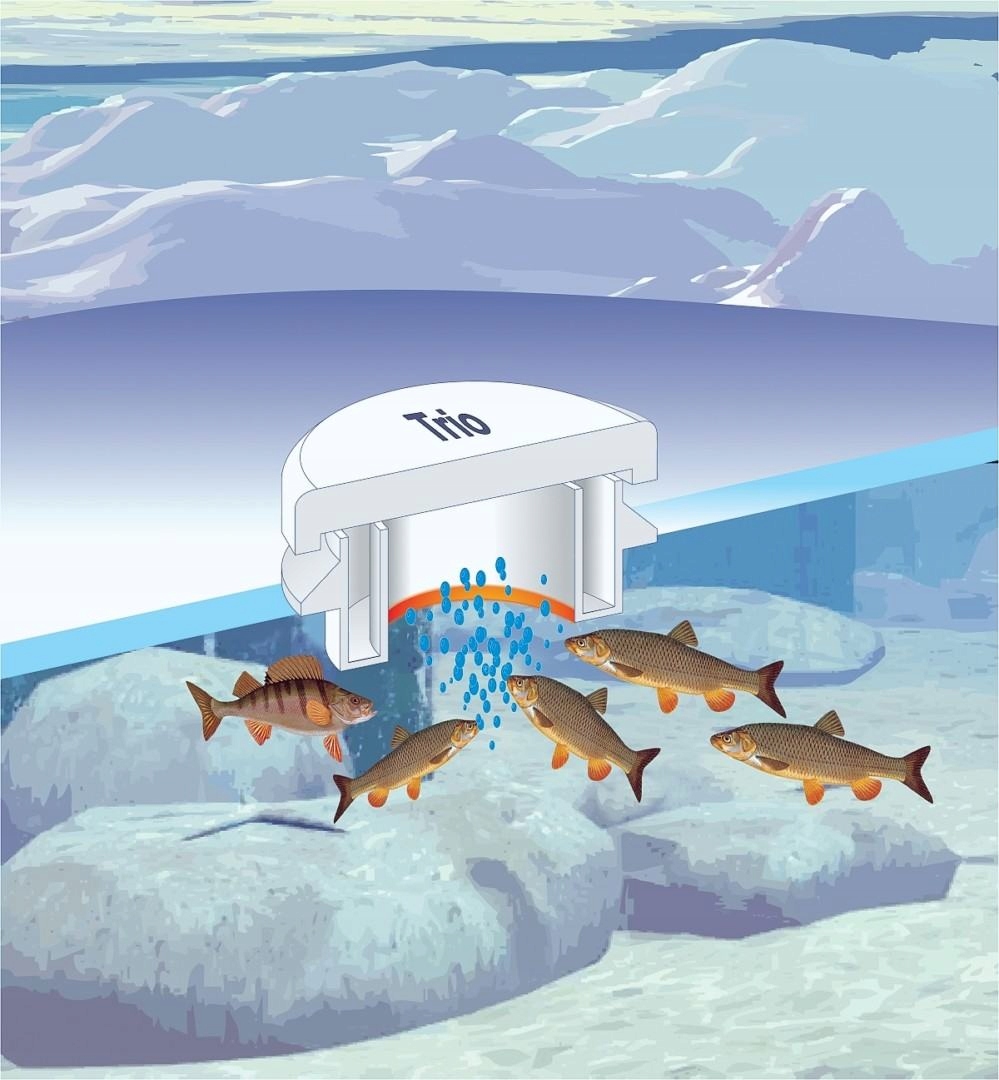 Любка TRIO Ice Hole з нагрівачем захищає ставок від замерзання до температури близько -20 °C. Одного пінополістиролу TRIO вистачає приблизно на 15 м2 ставка.