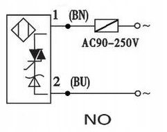 Індуктивний датчик наближення 90/250 В змінного струму NO, нормально відкритий.