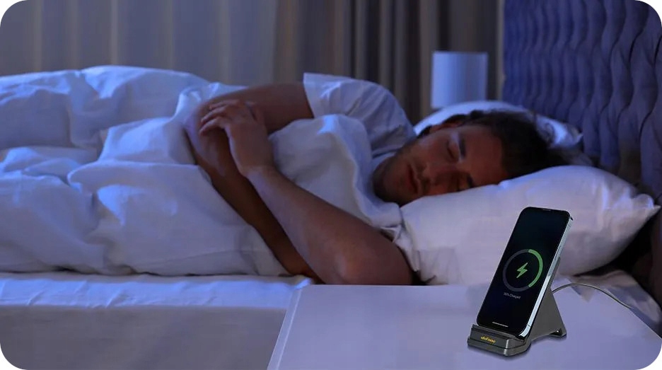 Зарядний пристрій оснащено безшумним вентилятором, який охолоджує пристрій під час заряджання. Він настільки тихий, що не заважає вам спати - ви можете заряджати телефон вночі.