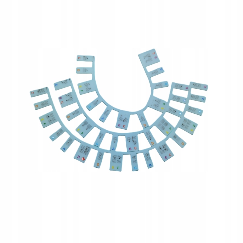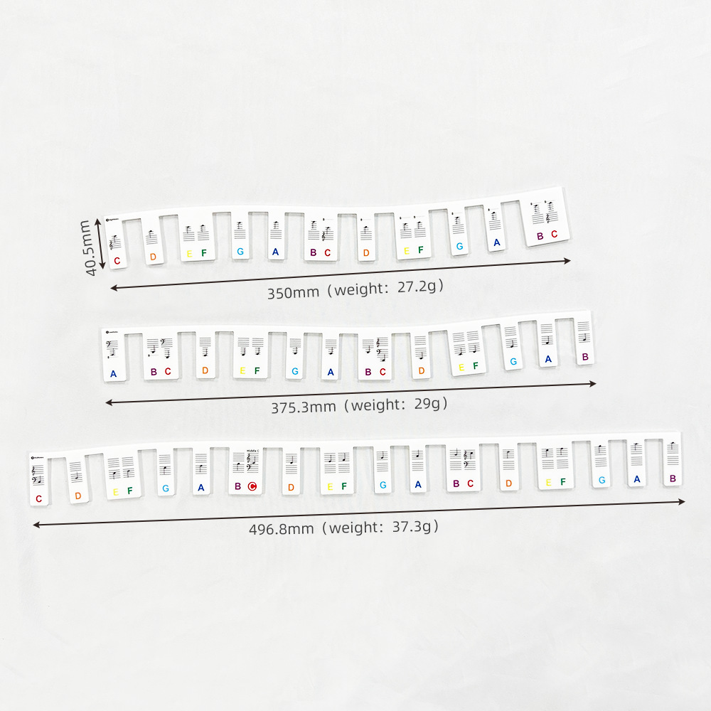 Завдяки чітко видимам клавіш та нотатках етикетка клавіатури полегшує запам'ятовування музичних позначення та позицій клавіш для піаністів -початківців. Світлова конструкція полегшує вправу в умовах низького освітлення.