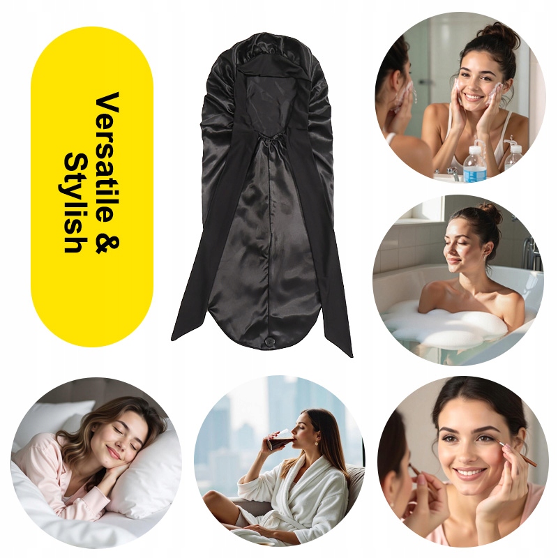 М’яка та зручна: ця шапка виготовлена з високоякісного поліефірного атласу, надзвичайно м’яка та ніжна для вашого волосся. Гладкий атласний матеріал зменшує тертя та запобігає завиванню та сплутуванню волосся під час сну.