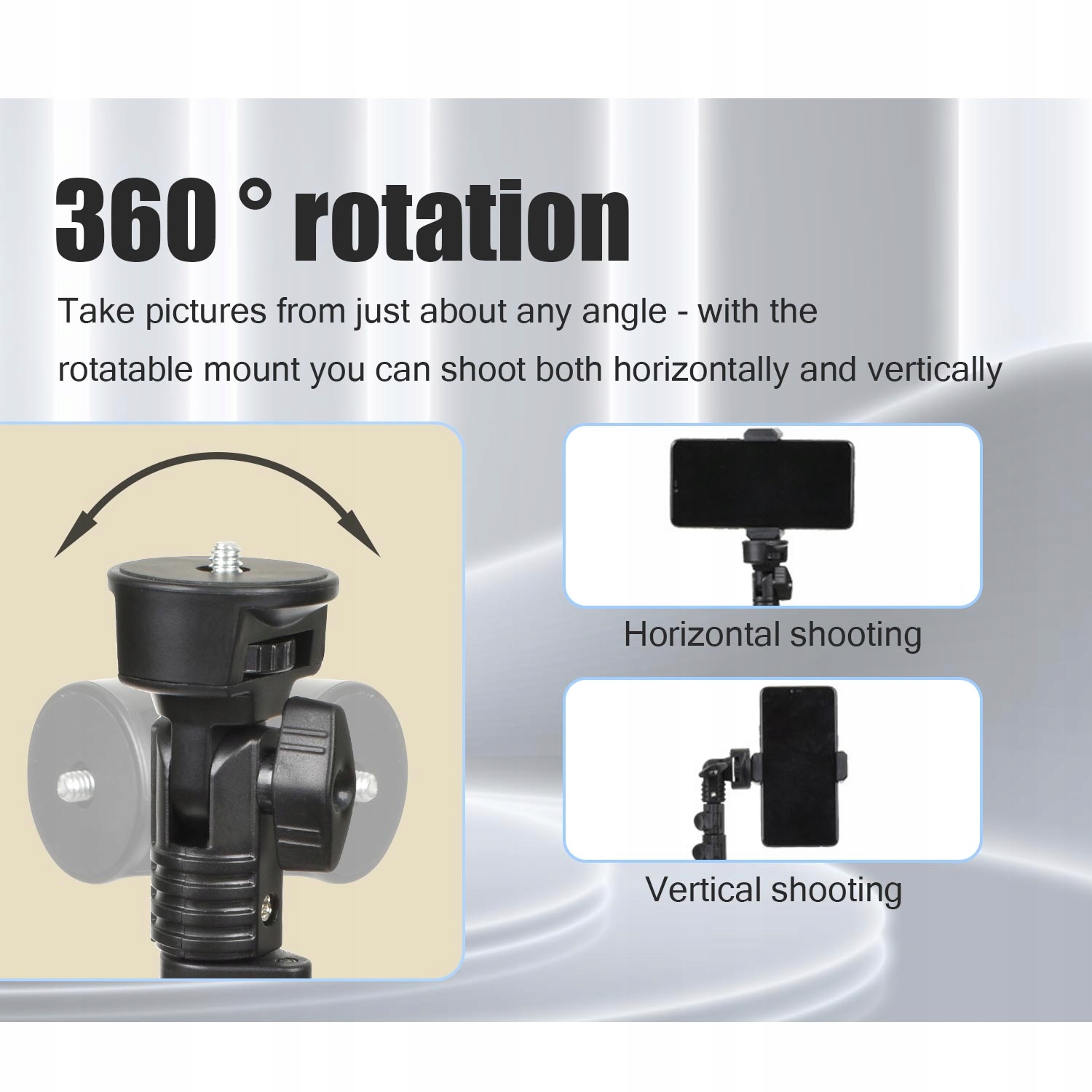 обертання на 360 °: сфотографуйте під будь -яким кутом - завдяки обертовому кріпленню ви можете сфотографувати як горизонтально, так і у вертикалі. Підставка для камери може бути розміщена на підлозі або використовувати як штатив столу.