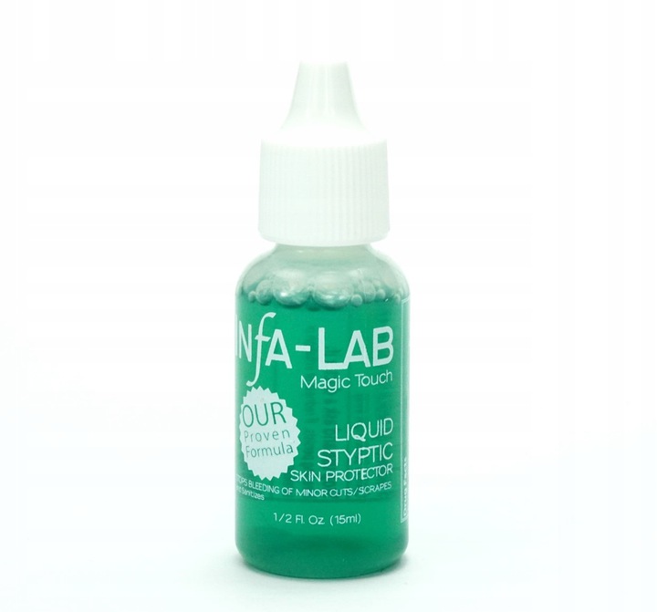 Застосування: Infa-Lab Magic Touch Liquid Styptic Skin Protector наносити безпосередньо на рану. Нанесіть одну або дві краплі препарату на чисту ватну паличку і покладіть її на рану, що кровоточить, на кілька секунд. За потреби повторіть дію.
