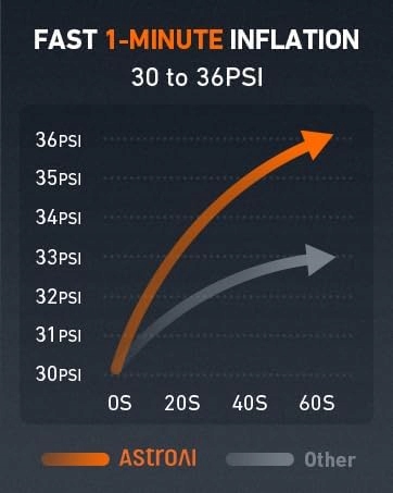✅ Astroai Air Compressor є обов'язковим для кожного водія. Завдяки металевій конструкції та потужності 160 фунтів на кв. Дюйм, пристрій забезпечує швидке та ефективне перекачування шин у пасажирських автомобілях, позашляховиках, мотоциклах, велосипедах та багатьох інших. портативний дизайн та живлення 12В змушують його працювати в кожній подорожі та надзвичайній ситуації.