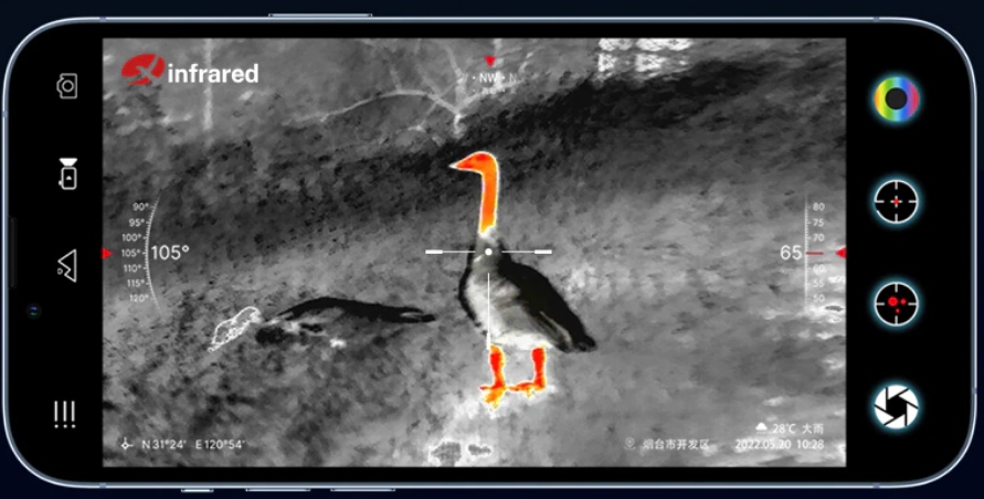 Цей спосіб використання цієї теплової камери визначається великим фокусним об'єктивом на цілих 19 мм, FOV 19,6 °*20,7 ° , а також спеціалізованою xinfrared із функцією Zoom, виправленим вручну прицілом та орієнтацією в космосі N-s-w-w-e