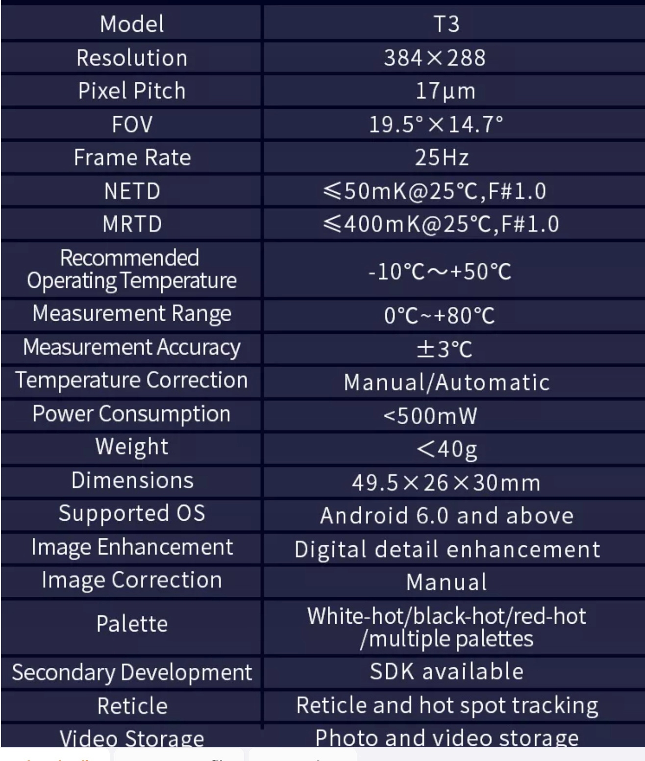 Infiray T3 Пошук 384 × 288 25 Гц Теплова камера візуалізації