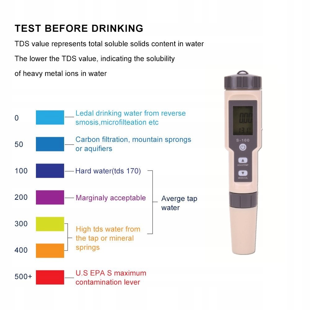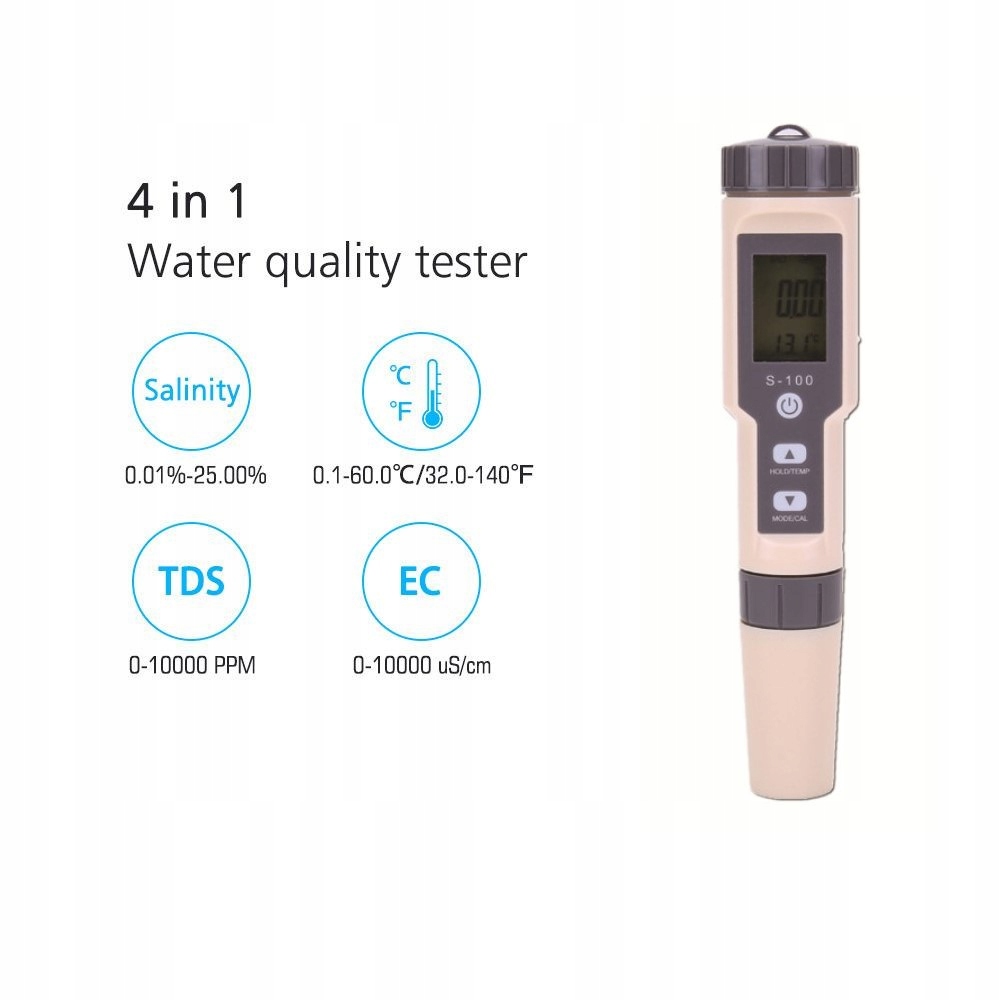- Вимірювання TDS, EC, Salininy та Water Tapre