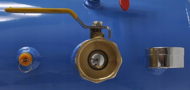 Він оснащений запобіжним клапаном, який контролює тиск у баку.