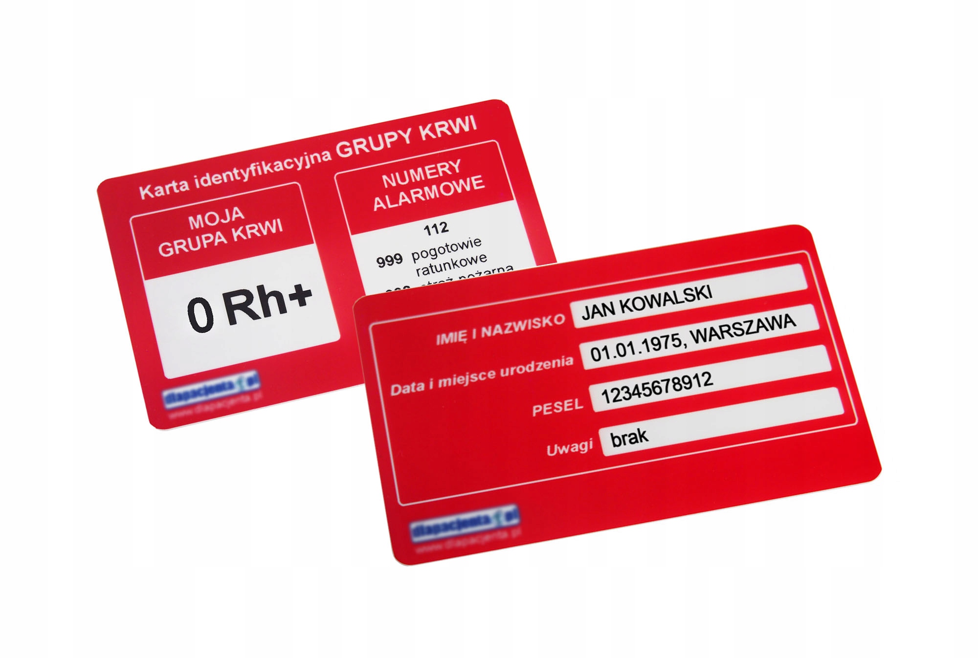 Завдяки цій картці, яку можна носити, наприклад, у гаманці, ми можемо швидко повідомити екстрені служби про нашу групу крові, що може прискорити роботу медичних послуг.