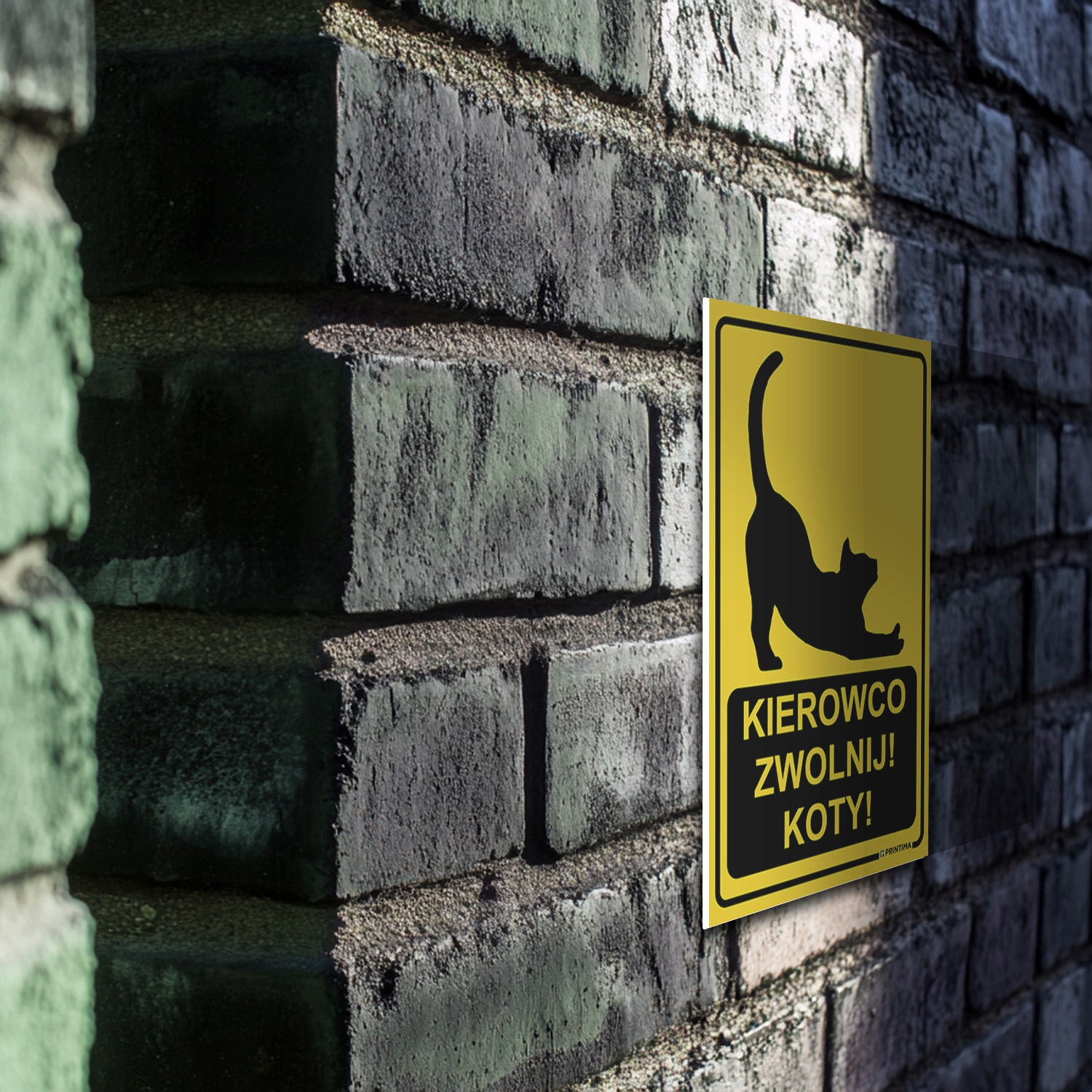 ⚫ ЗНАК ПВХ 21x32 "ВОДІЙ, ТИШСЬ! КОТИ!"