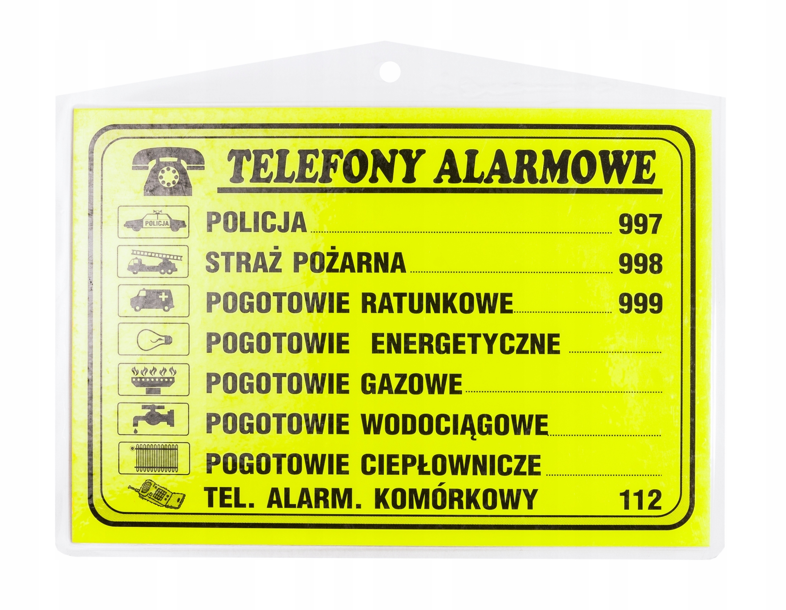 Ламінований щит з написом «ТЕЛЕФОНИ ТРИВОГИ» з щільного картону, покритого ламінатом. .