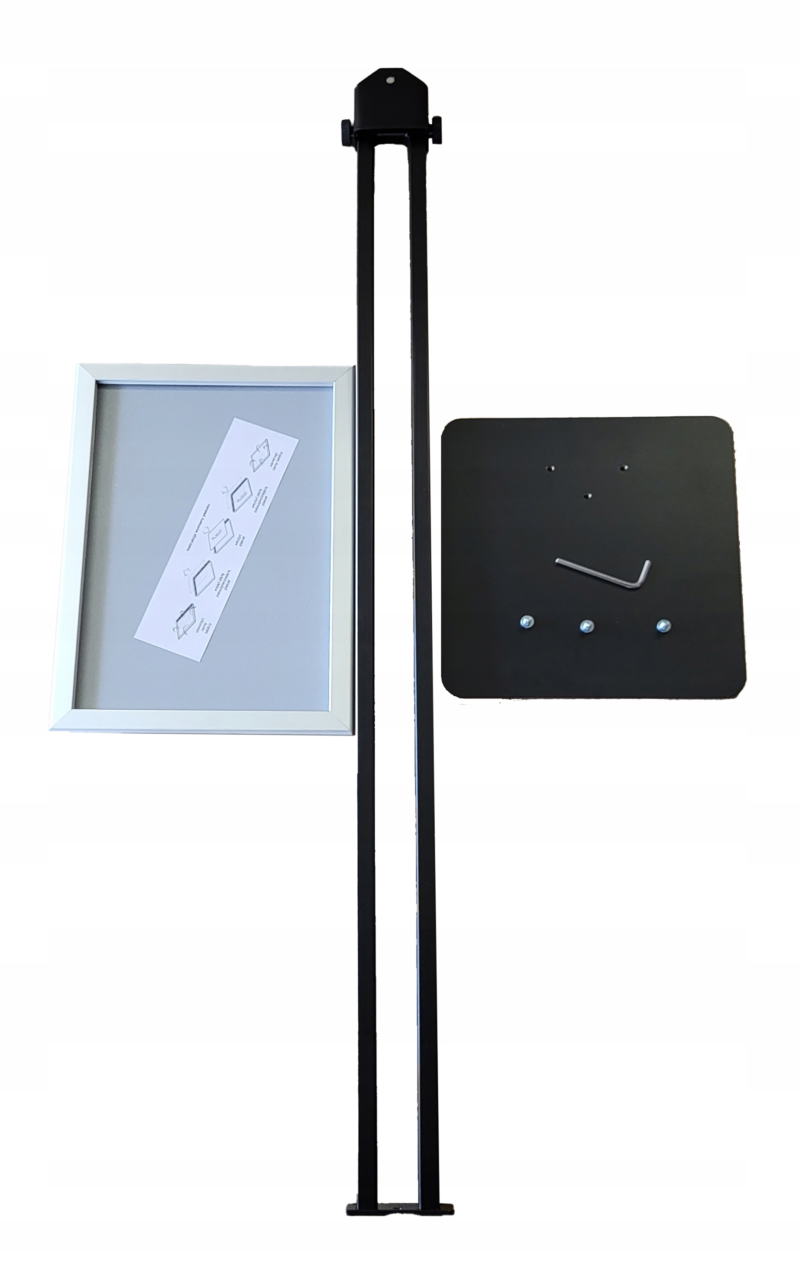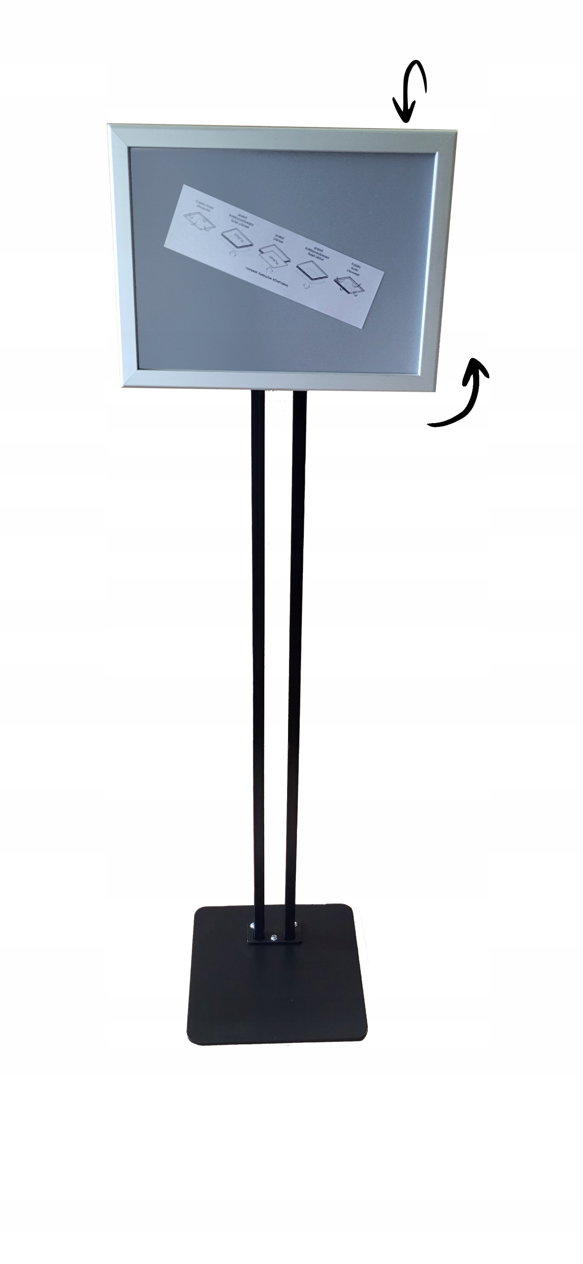 Простий дизайн стенд дозволяє розмістити його в рамці плаката з інформацією у форматі A3 увертикальному та горизонтальному варіантах.