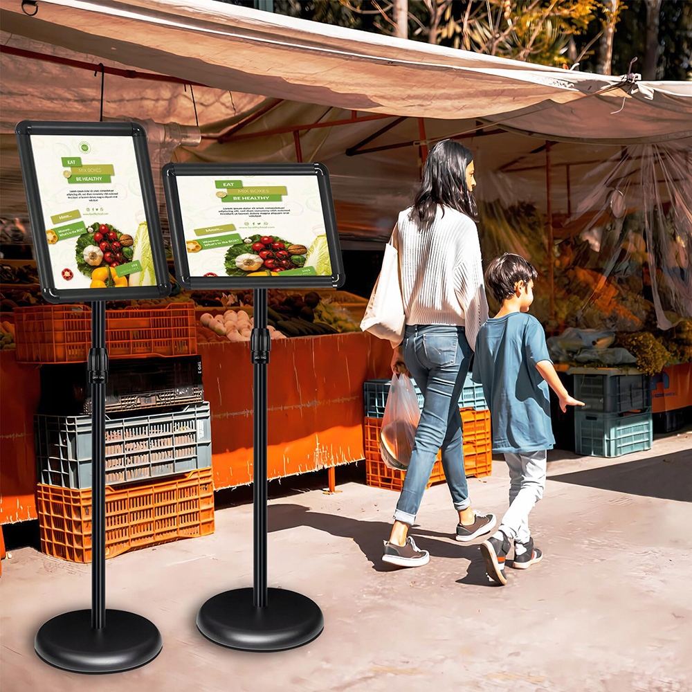 ✔ Міцна підставка для плакатів, дуже стабільна установка на землі завдяки додатковому наповненню (вода або пісок) і оснащена нековзкими ніжками. Підставка стійка до зламів, міцна та стійка. Стабільна реклама.