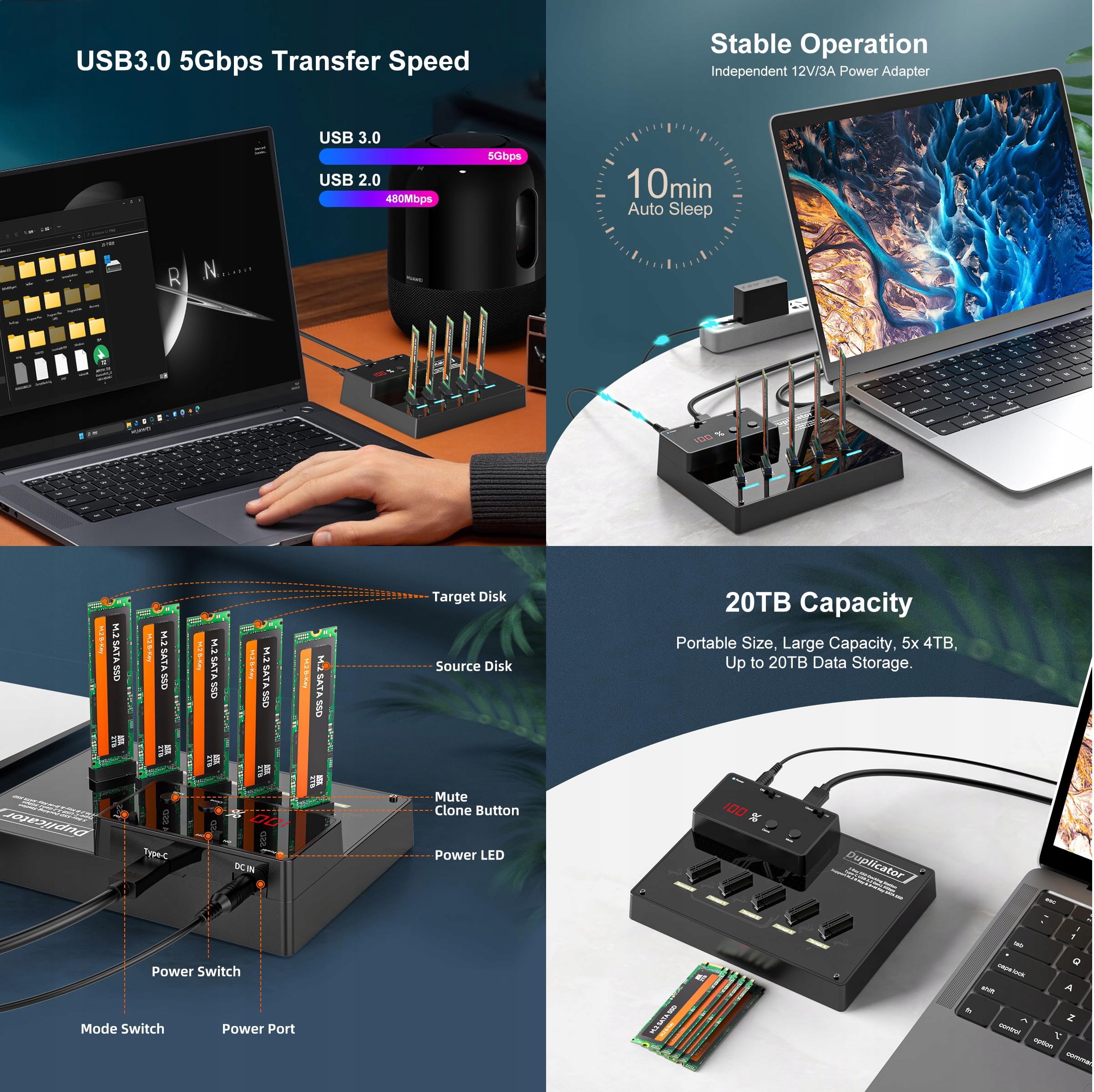 M2 SATA USB3 5GB SSDS - ідеальний інструмент для клонування даних з одного SSD для чотирьох інших. Забезпечує швидкий доступ до вмісту диска та дозволяє в офлайн -клонуванні даних. Сумісний з Windows та Mac.