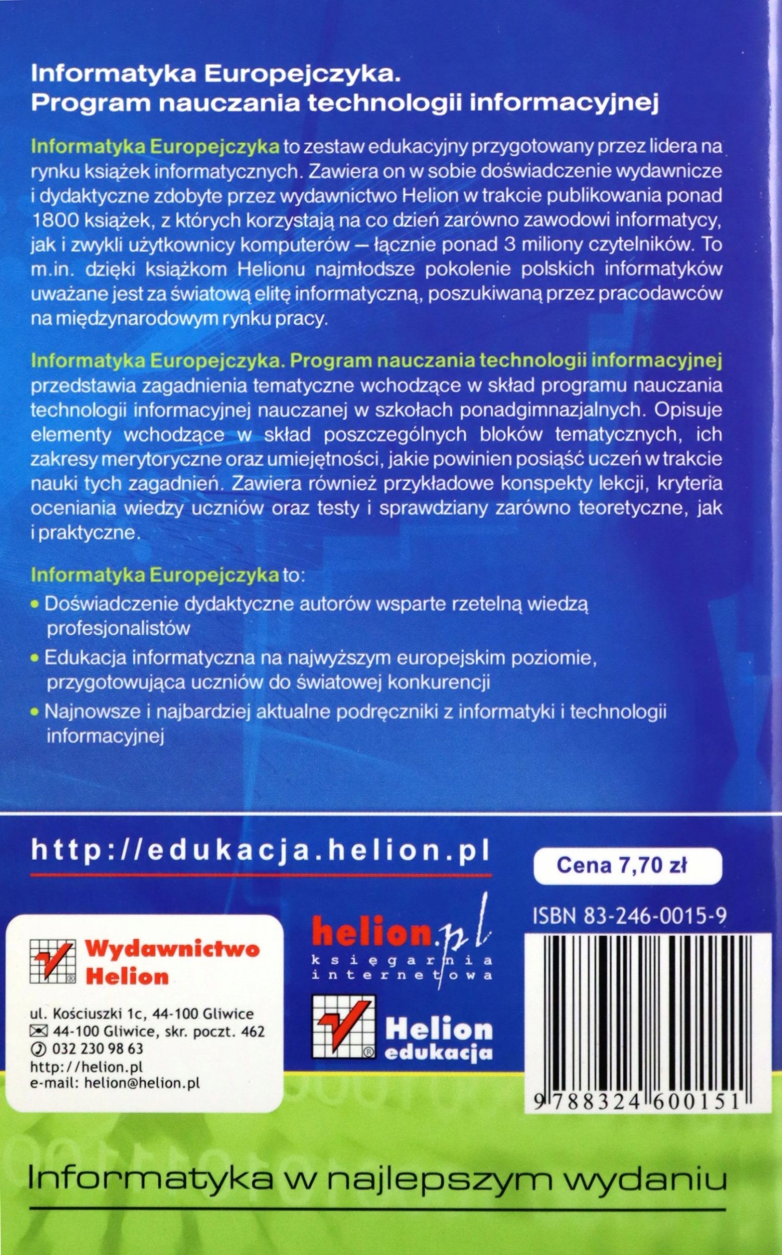 «Європейські ІТ» — навчальний комплект. підготовлений лідером книжкового ринку IT. Він містить видавничий та викладацький досвід, накопичений видавництвом «Геліон» у ході видання понад 1800 книжок, якими щодня користуються як професійні ІТ-фахівці, так і звичайні користувачі комп’ютерів – загалом понад 3 мільйони читачів. Це включає: завдяки книгам Геліона наймолодше покоління польських ІТ-фахівців вважається світовою ІТ-елітою, яку шукають роботодавці на міжнародному ринку праці.