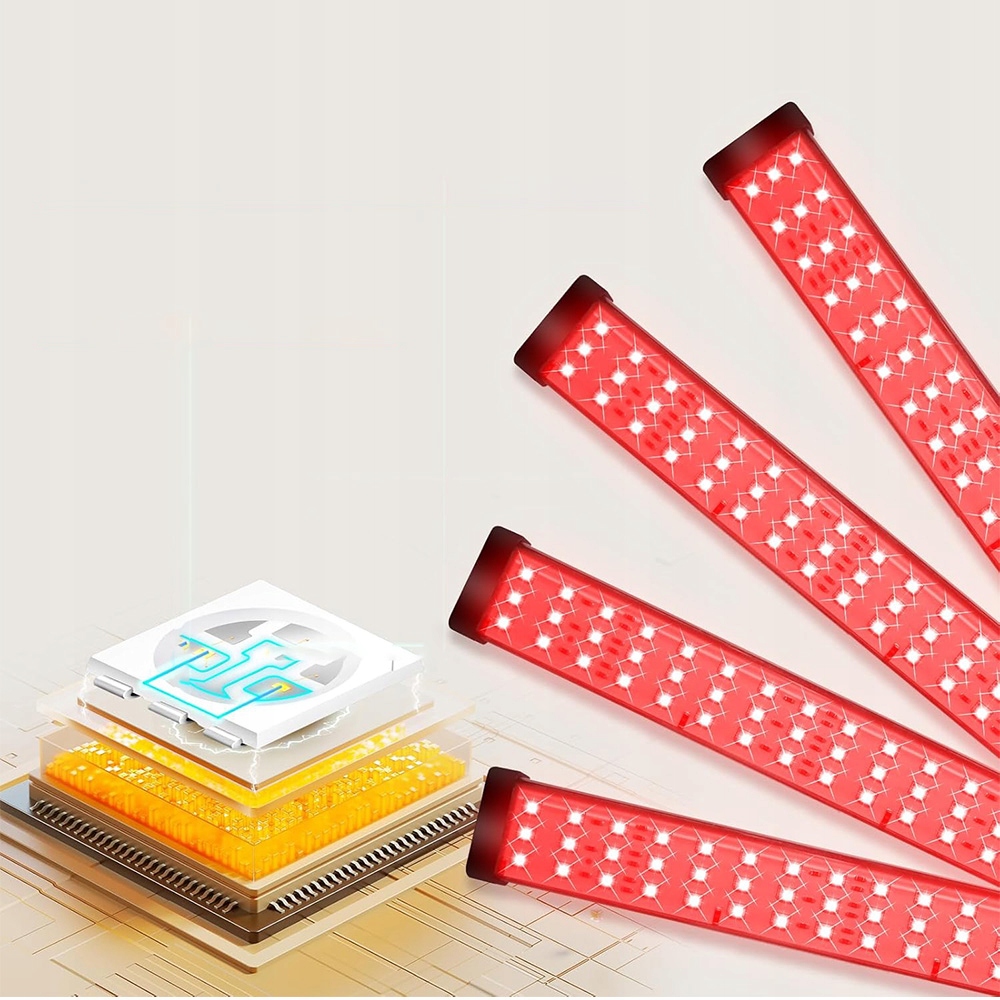 Це 35-ватне червоне світло складається з загальної кількості 180 світлодіодів, у тому числі 360 світлодіодів 660 нм та 180 світлодіодів 850 нм, що забезпечує повне покриття та підвищення ефективності. 3 в 1 технологія чіпів забезпечує ефективне розподіл світла та максимально збільшує досвід користувача від червоного
