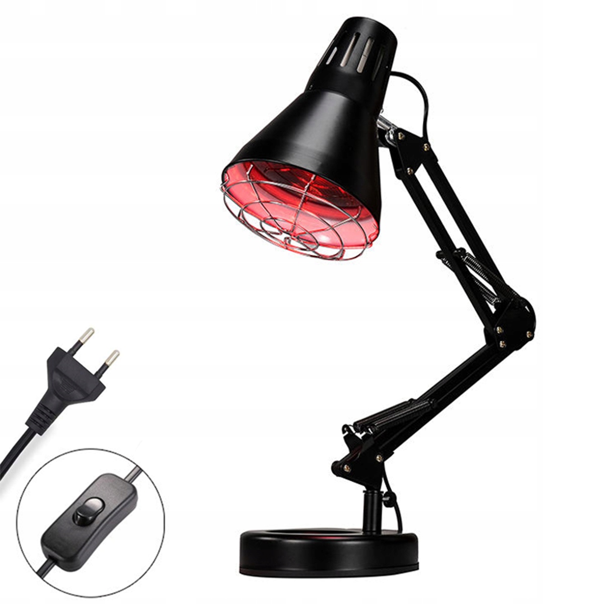 💡РЕГУЛЮВАННЯ ВИСОТИ ТА КУТА:Лампа з інфрачервоним нагріванням має стійку міцну металеву основу та основу, а горловина та голова регулюються на 180°, тож ви можете розташувати лампу в потрібному місці та в потрібному напрямку, якщо це необхідно. Сітчастий чохол проти опіків, безпечний і надійний, зручний у використанні. Інтерфейс головки лампи оснащений роз’ємом E27 і різьбовою колбою, універсальною та легкою для заміни.