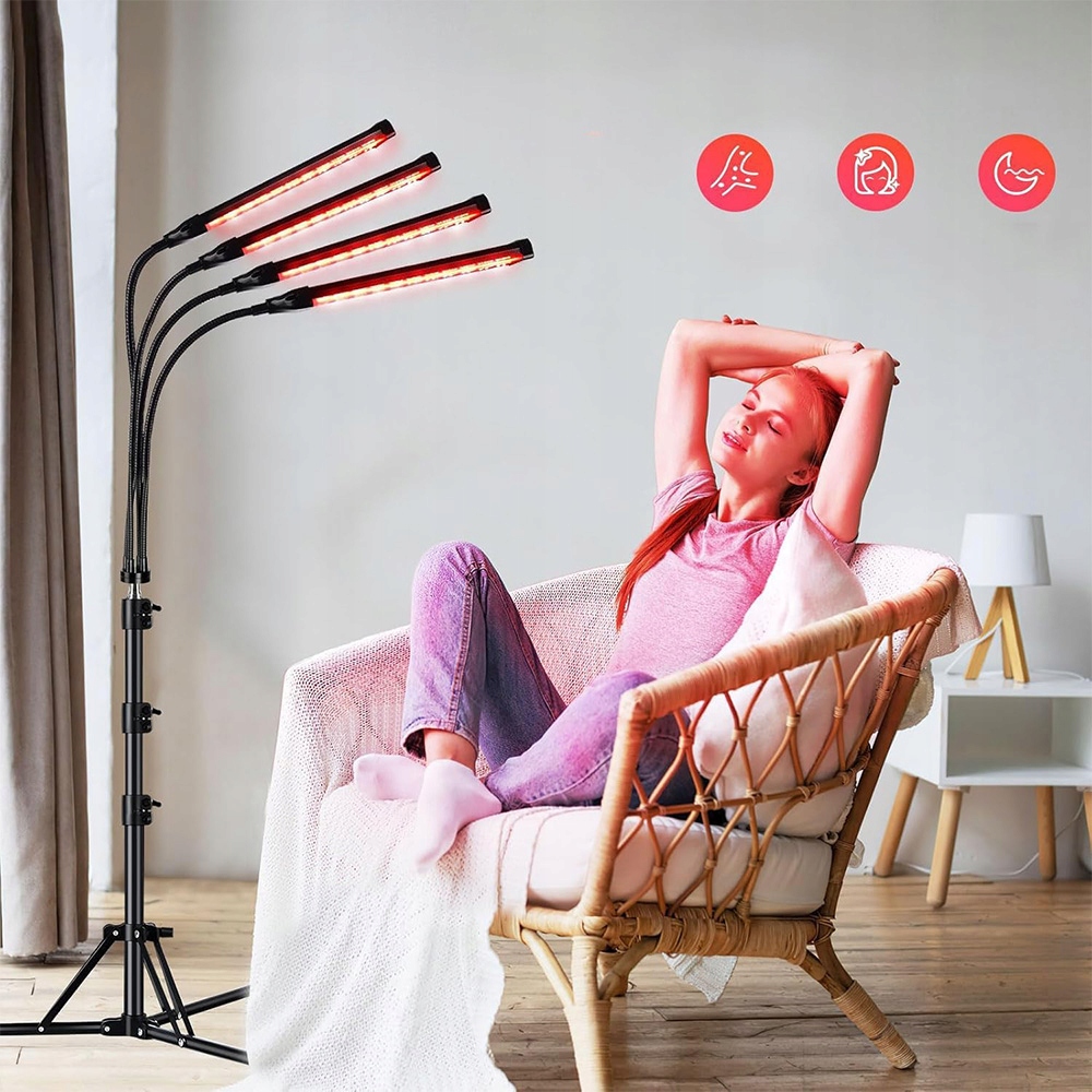 💡💡 інфрачервона терапевтична лампа 660 нм + 850 нм регульована штатива 4 Голова 11 Рівень Чорний 💡💡