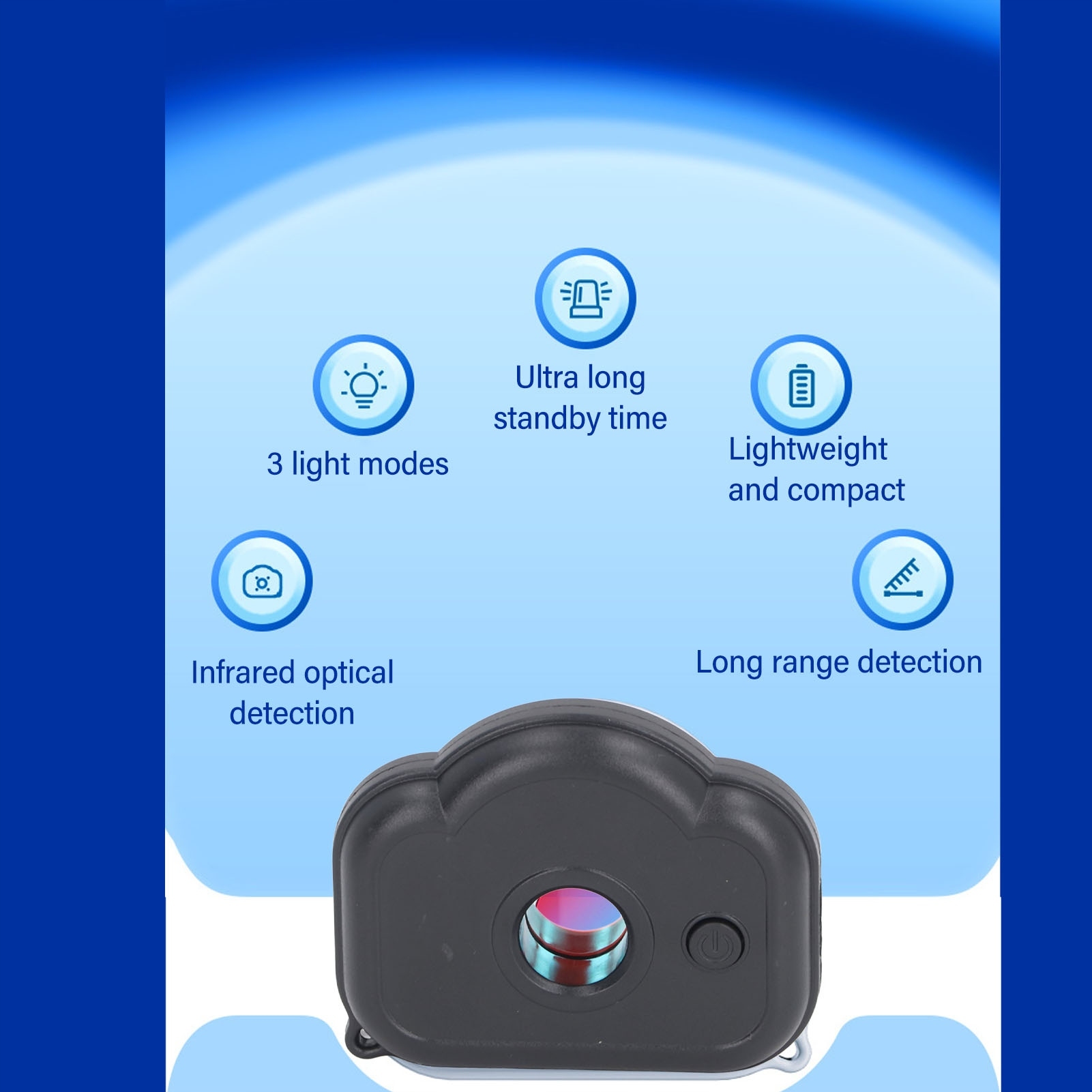 3. Портативний та компактний: Завдяки світлу та компактному розміру, цей детектор камери легко переносити і його можна зручно використовувати в домашніх умовах, офісі або під час подорожі.