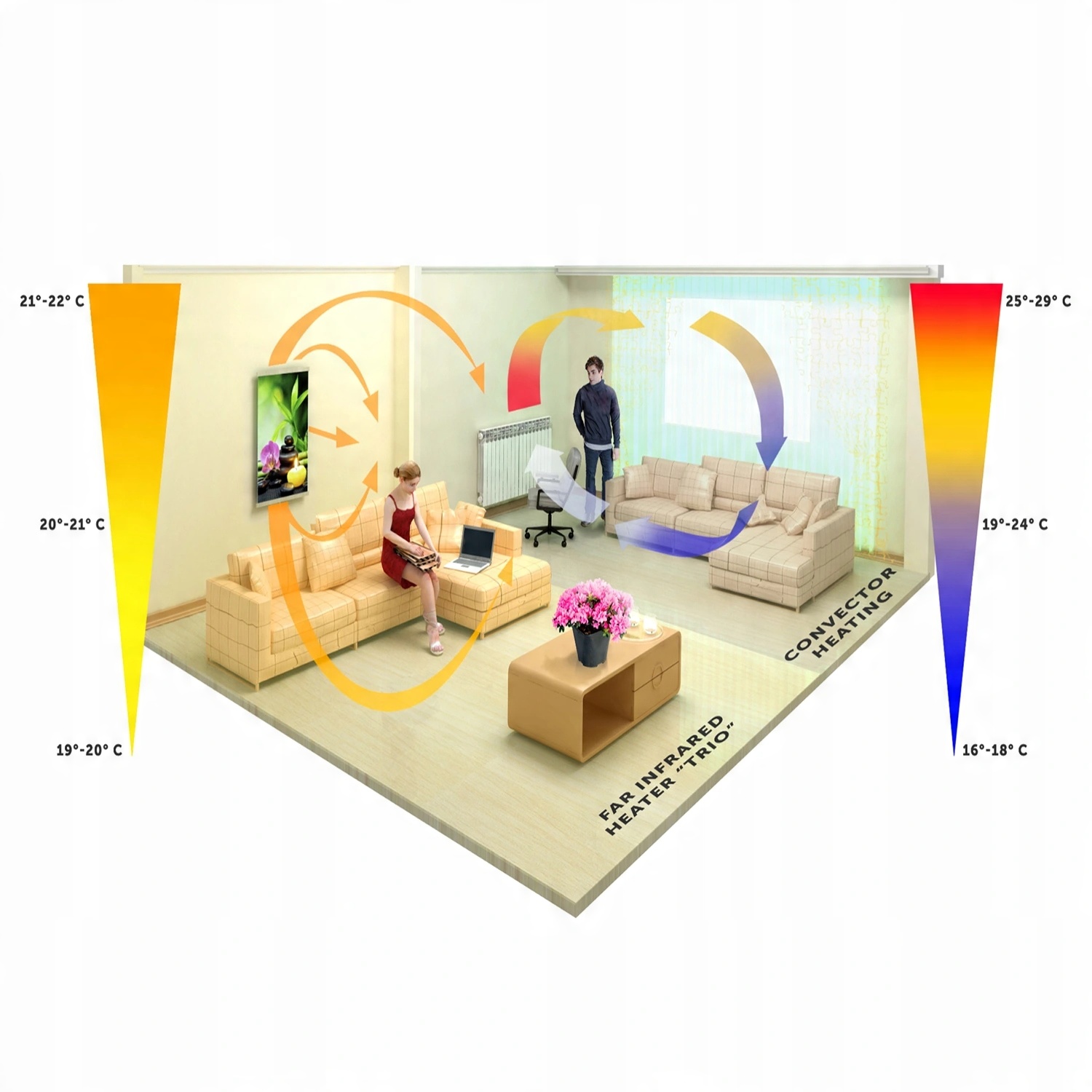 Радіатор забезпечує тепло і тепловий комфорт в приміщенні. Цей ефект досягаєтьсязавдяки довгим інфрачервоним хвилям, які утворюються при нагріванні вуглецевого волокна. Вуглецеве волокно має високу теплопровідність, що дозволяє знизити споживану електроенергію і тим самим заощадити на опаленні. Під час роботи радіатор не нагріває повітря сам, а нагріває навколишні предмети і тіло людини (покращує кровообіг в тіло) .
